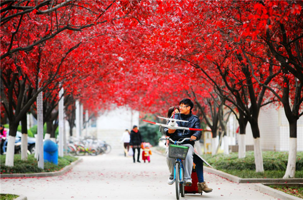 网友@追秋 记录下校园的秋色,“每年的秋冬,西南石油大学的红叶李给校园带来了一片醉人的红,别具风情”,川宝看了也想去逛逛秋日的校园呢~