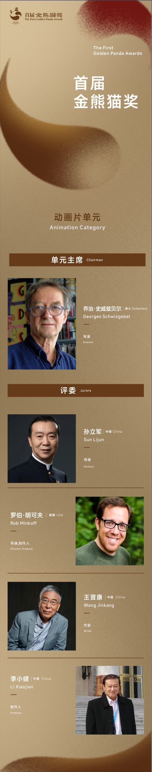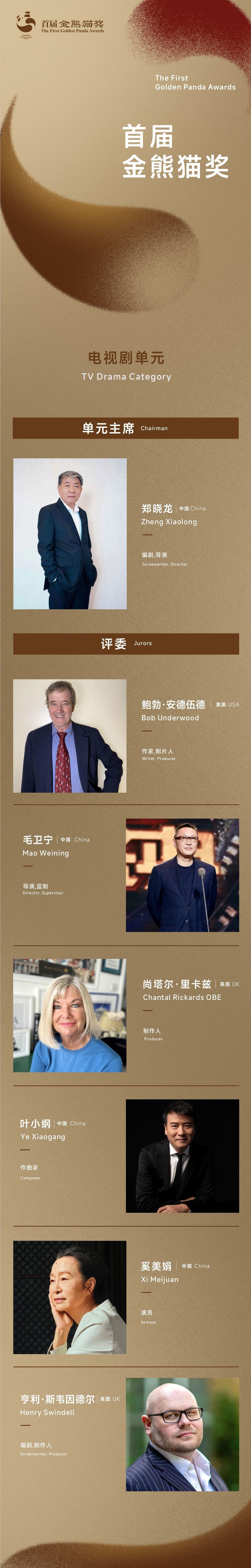 本届金熊猫奖评选活动分为电影、电视剧、纪录片和动画片四个单元,每单元5—7名评委,共27位评委。
