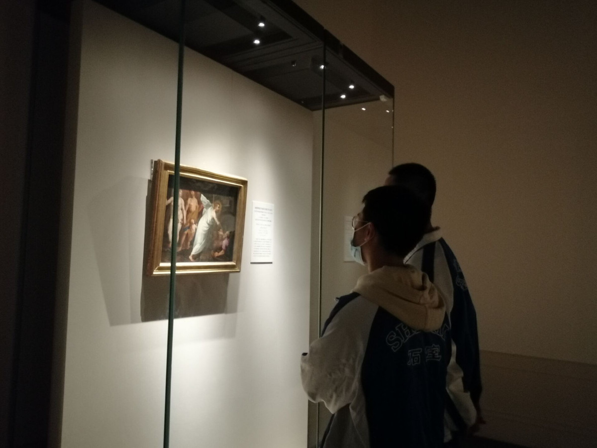 学生们在刘静老师的引导和启发下,走进“光影浮空:欧洲绘画五百年”展览,寻找自己最喜欢的画作,结合自己近距离的观察和老师课堂上传授的鉴赏方法,尝试分享自己对艺术作品的解读和看法。