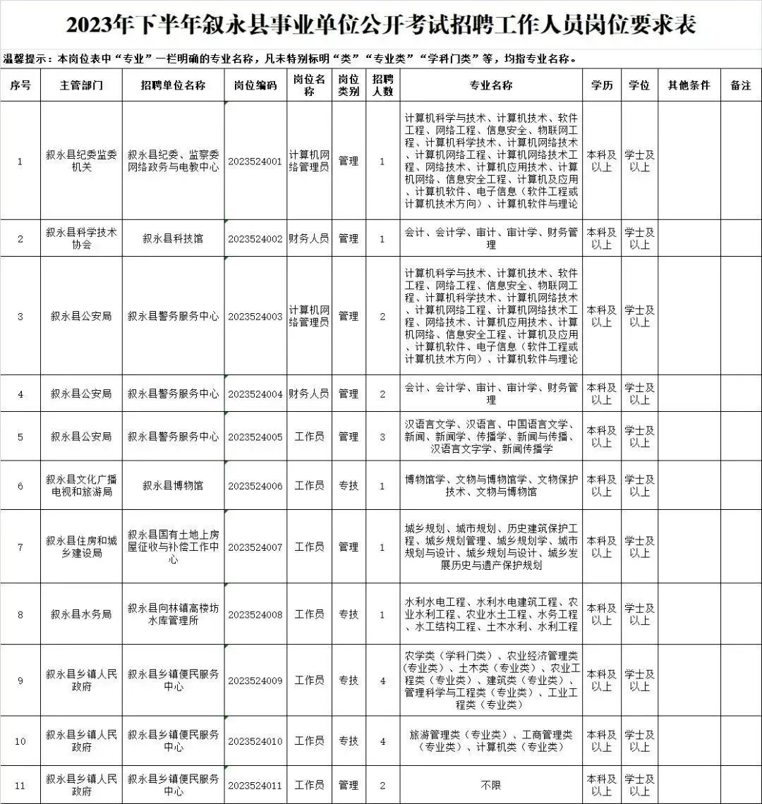 叙永县事业单位2023年下半年拟面向社会公开招聘22名事业单位工作人员。
