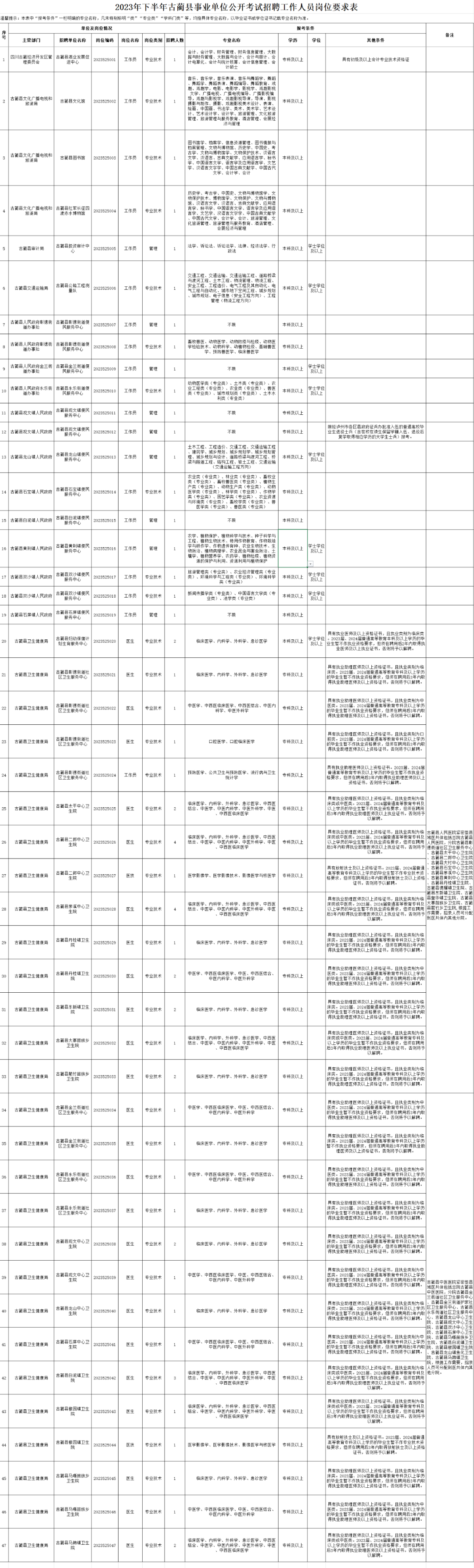 古蔺县事业单位2023年下半年拟面向社会公开招聘62名事业单位工作人员。