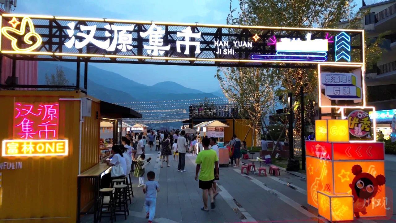 9月6日傍晚,“汉源集市·富林一号”市场人来人往。当天开市的集市,汇聚了本地各类小吃,五颜六色的灯牌和装饰,也吸引了不少市民前来游玩。