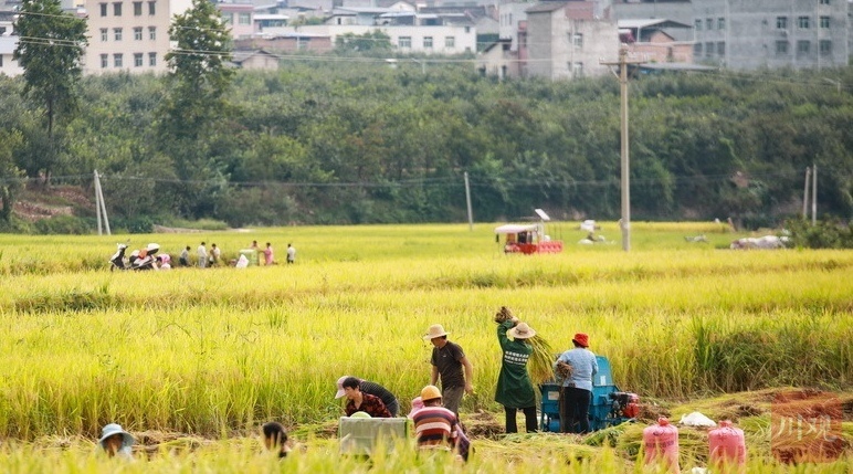 “超级稻”的产出,也得益于一亩亩良田的成型和园区的不断完善。金秋时节,稻谷飘香,9月7日,流沙河沿线的汉源粮经复合现代农业园区,金黄色稻田里一株株颗粒饱满的稻穗迎风摆动,不少农户正抢抓农时和晴好天气,加紧收割。