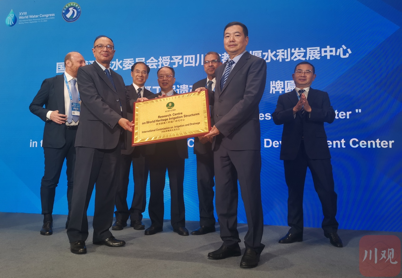 9月11日,第18届世界水资源大会在北京开幕。在当天举行的都江堰专场会上,国际灌溉排水委员会授予四川省都江堰水利发展中心“世界灌溉工程遗产研究中心”牌匾。
