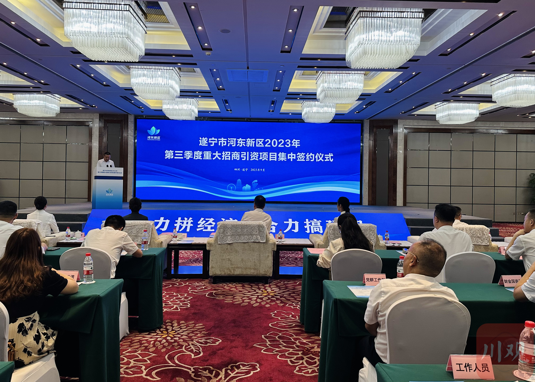 9月11日,遂宁市河东新区举行第三季度重大招商引资项目集中签约仪式,本次现场共签约遂宁1912滨河商业街、西部唐都火锅城等8个项目,主要涉及商贸流通、乡村振兴和夜间经济等领域,总投资22.1亿元。项目的成功签约,将进一步助推市河东新区加快建设现代服务业集聚高地。