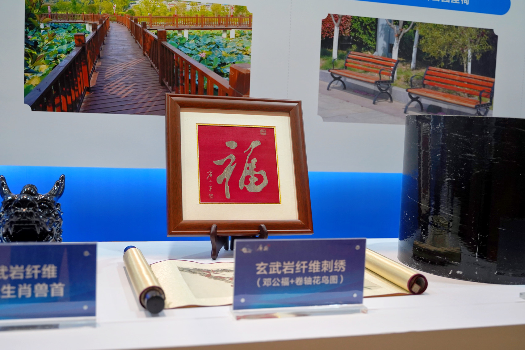 展览展出二十余种玄武岩纤维制品。图为玄武岩纤维刺绣。 吴迪 摄