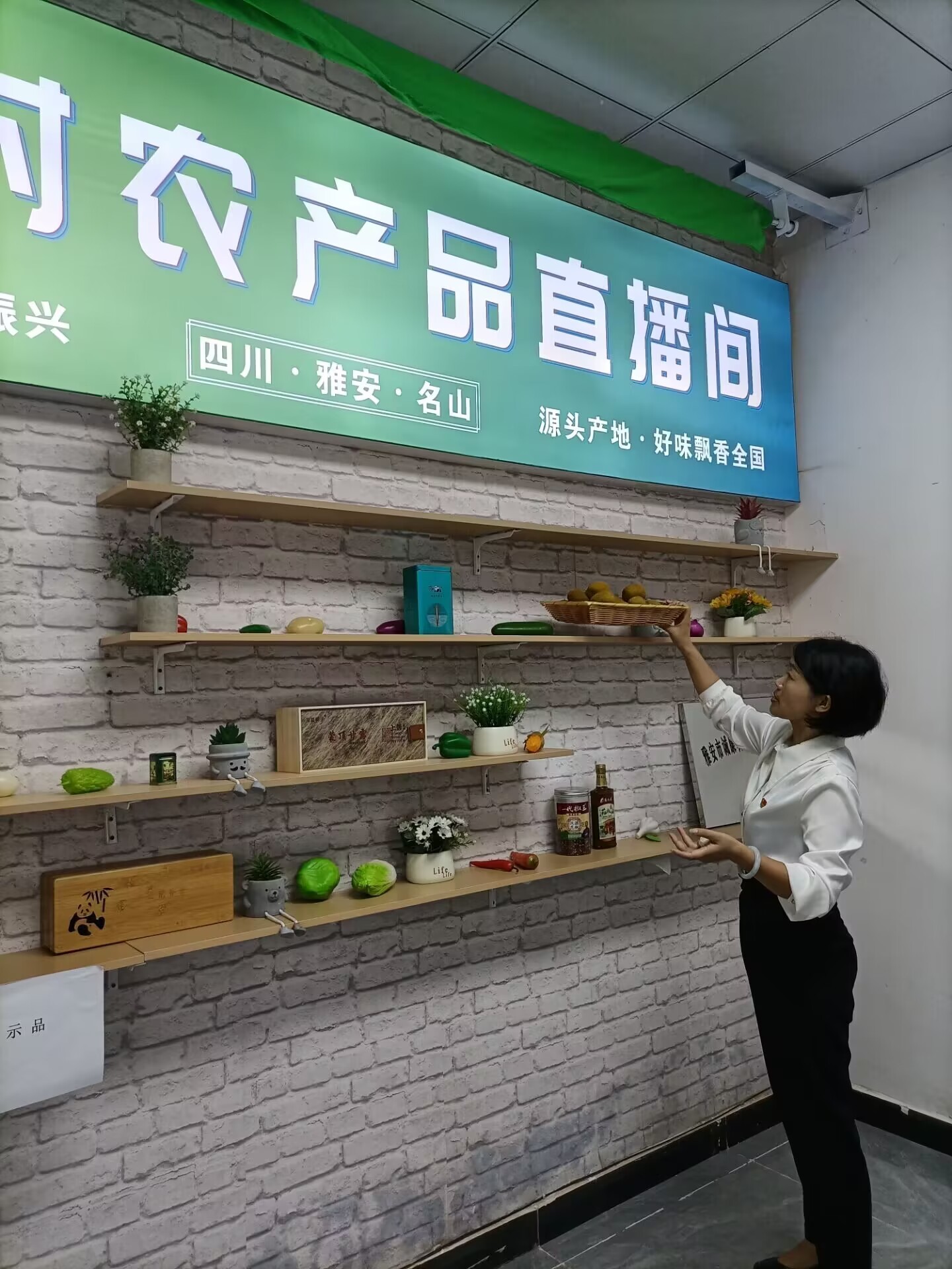 高岗村村委会还借势于当下各网络平台的直播热,搭建了一个多功能直播间。“按照‘党建+电商+村集体’的思路,我们是雅安市第一个开展村集体网络直播带货的。”吴洪琴自豪地说,大约每周播两次农副产品直播,主要是村妇女主任出镜,有时她也登台尝试。
