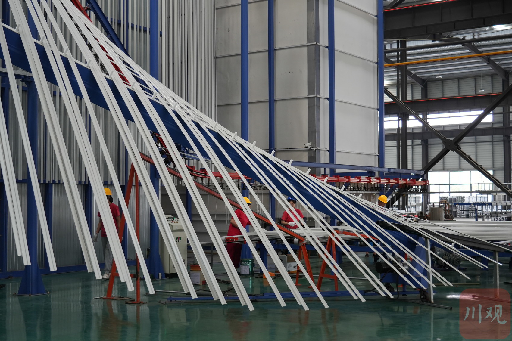 9月8日,位于广元经济技术开发区袁家坝铝产业园的四川广荣铝业有限公司生产车间内,一根根铝棒被放入机器,经过挤压,可用于建筑的高端铝型材生产出炉。这一批生产的30余吨铝型材将装车发往广东佛山。