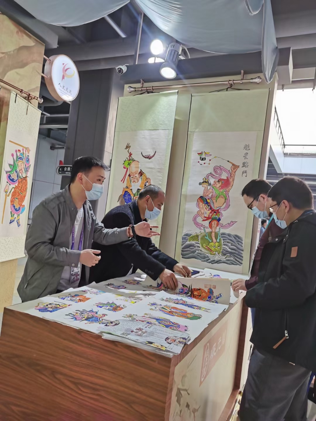 李德敬透露,参加进博会的6天时间里,已与一些企业进行接洽并达成初步合作意向,部分电商、短视频平台尤其对年画感兴趣。“年画在视觉上非常抢眼,能给人留下深刻印象,可以说过目不忘,很适合通过电商、短视频平台合作展示、推广、销售,具体思路可以进一步探讨。”此外,李德敬表示,绵竹年画也可以通过授权进行衍生产品开发等方式,为自己找到发展新路。