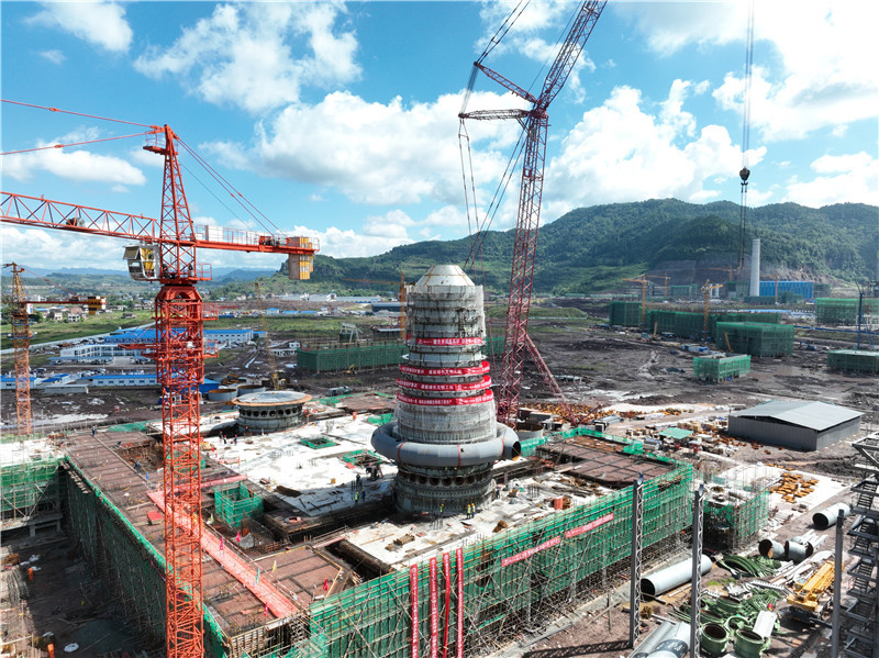 达州钢铁搬迁升级项目共新建2座钒钛矿冶炼高炉,采用三机同轴机组、均压煤气回收、煤气干法除尘、“一罐制”铁水运输、新能源机车等多种节能环保技术。按计划明年9月底1号高炉点火,明年底项目全面投产,建成生产绿色化、排放超低化的现代生态工厂。(达州钢铁党群工作部供图)