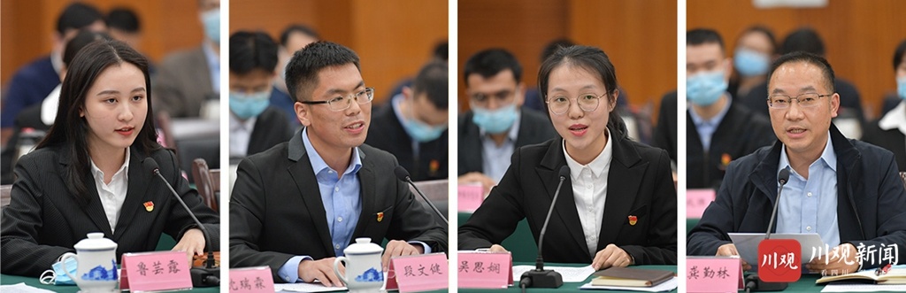 四川大学望江校区文理图书馆报告厅内气氛热烈,40多名师生代表围坐一起学习五中全会精神。