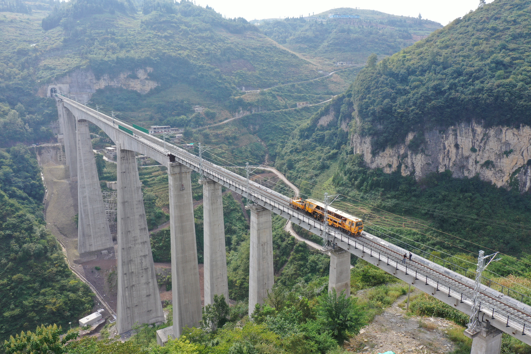 叙毕铁路项目地形变化复杂,施工难度极大。线路海拔高度从四川盆地的358米抬升至云贵高原的1573米,经过丘陵,中低、低中山,云贵高原等地貌单元,全线桥隧比高达86.19%,高墩大桥、超长隧道遍布,桥隧相连特殊工况多。