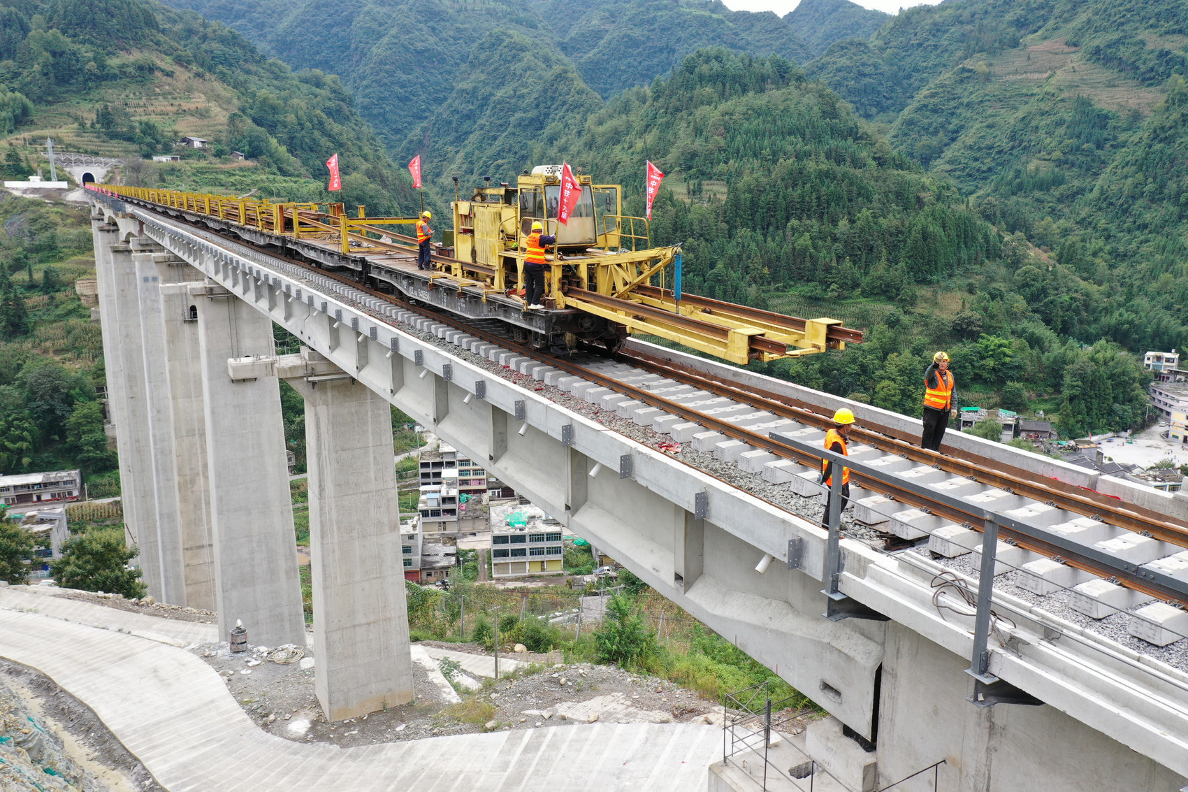 9月14日,在云南省昭通市境内叙毕铁路王寨隧道进口,随着最后一组500米长钢轨精准落位,叙永至毕节铁路(以下简称“叙毕铁路”)全线铺轨完成,为年底开通奠定坚实基础。