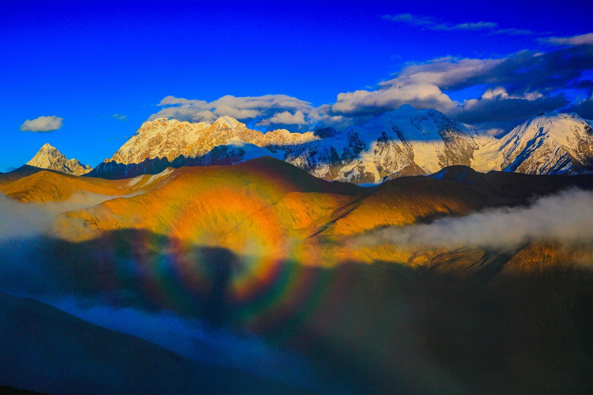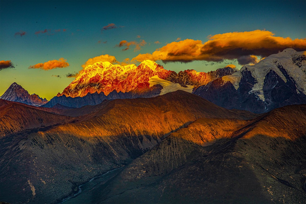 雪山、云海、佛光、日照金山……近段时间甘孜雪域高原天气持续晴朗,“蜀山之王”贡嘎山奇景频现,摄影师在位于康定市的雅哈垭口拍摄到多张贡嘎山脉的“高原大片”,群峰簇拥、雪山相接,甚是雄伟。
