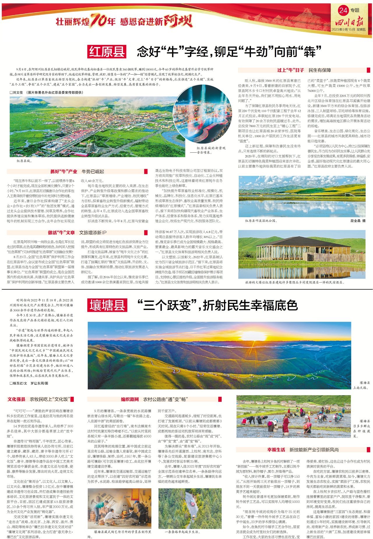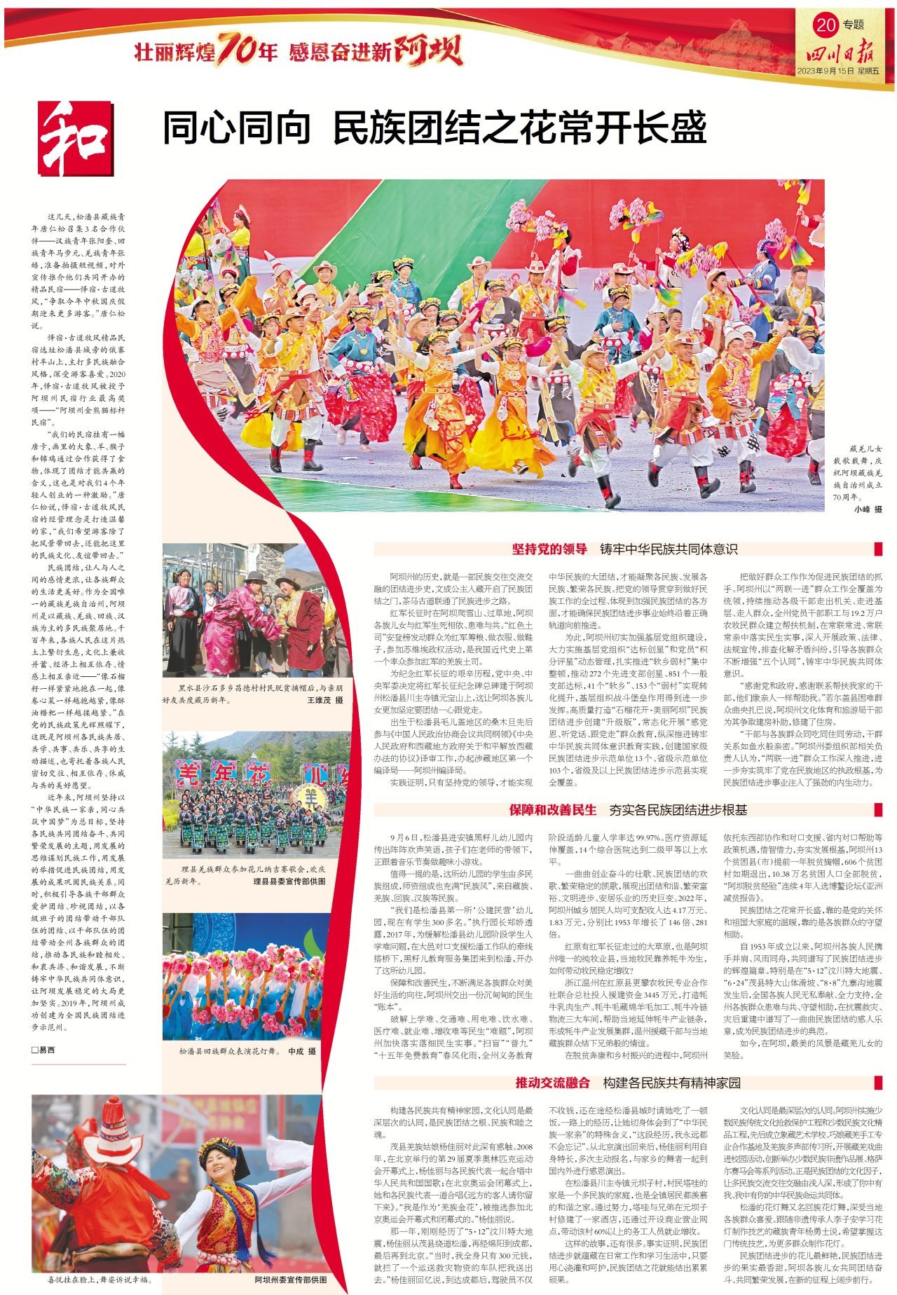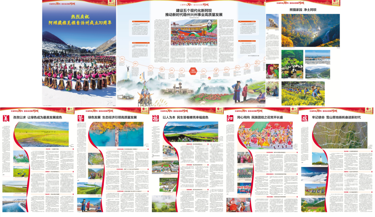 为庆祝阿坝建州70周年,《四川日报》于9月15日推出16个整版特别报道,整体以红色打底,充满喜庆的祝福。