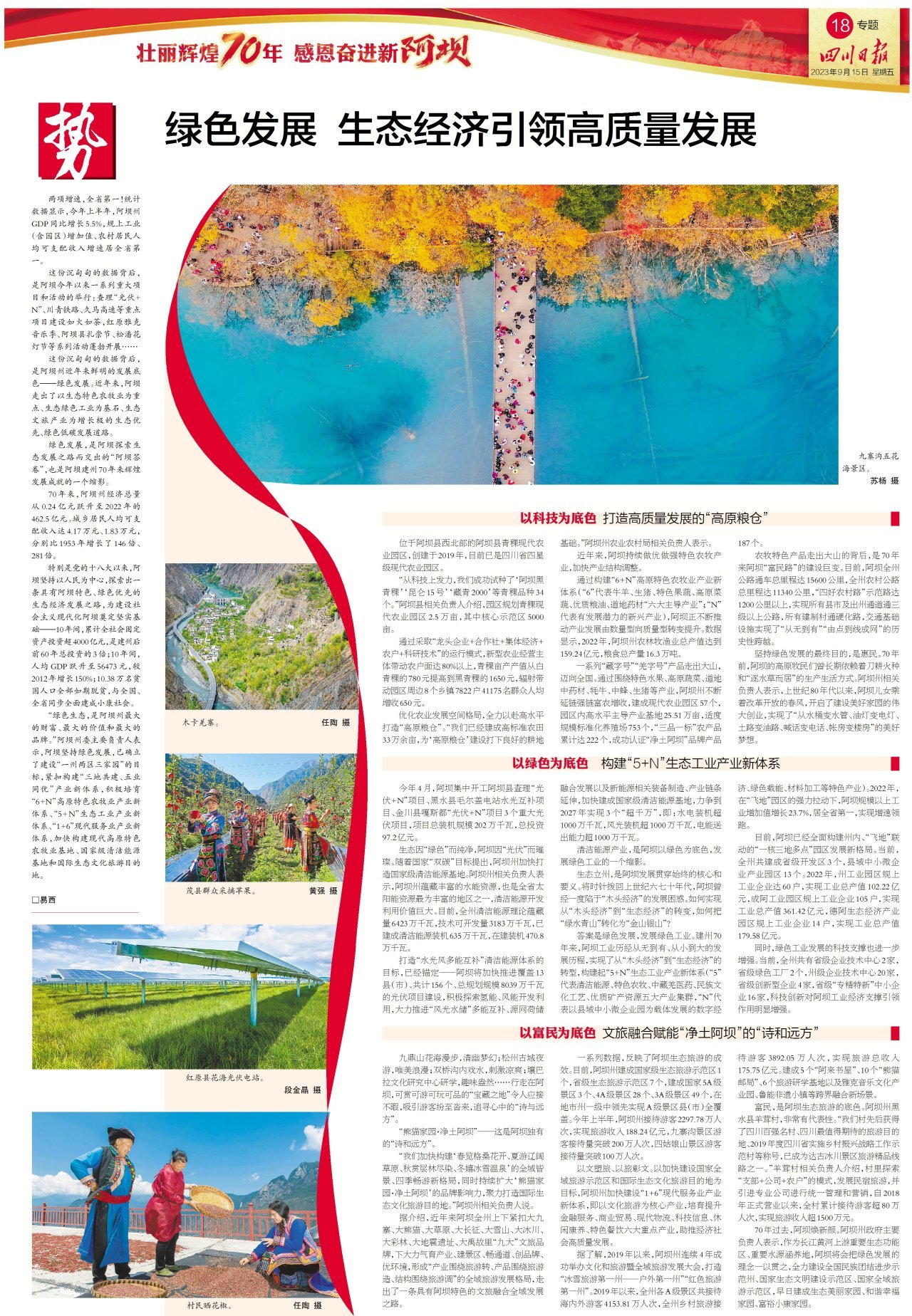 今天,值此阿坝藏族羌族自治州成立70周年之际,四川省委机关报——四川日报,推出16个整版,以图文并茂的形式,次第展开70年来这片土地波澜壮阔的宏伟画卷。