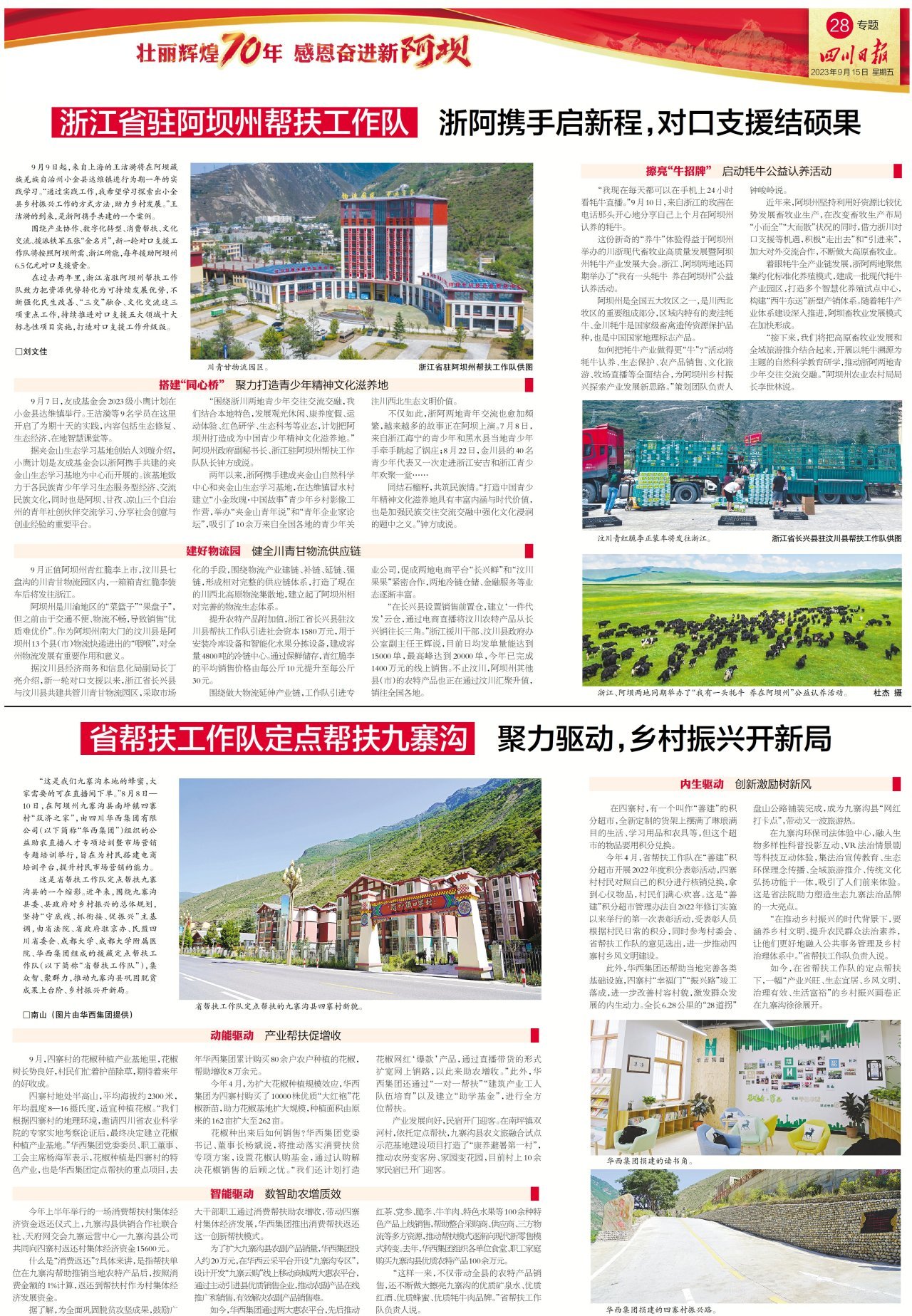 22——28则用六个整版分别讲述了阿坝州马尔康市、金川县、阿坝县、红原县、壤塘县、汶川县、理县、松潘县、九寨沟县、黑水县十个县(市)的奋进故事以及浙江省驻阿坝州帮扶工作队和省帮扶工作队定点帮扶九寨沟等跨越山海的帮扶故事。