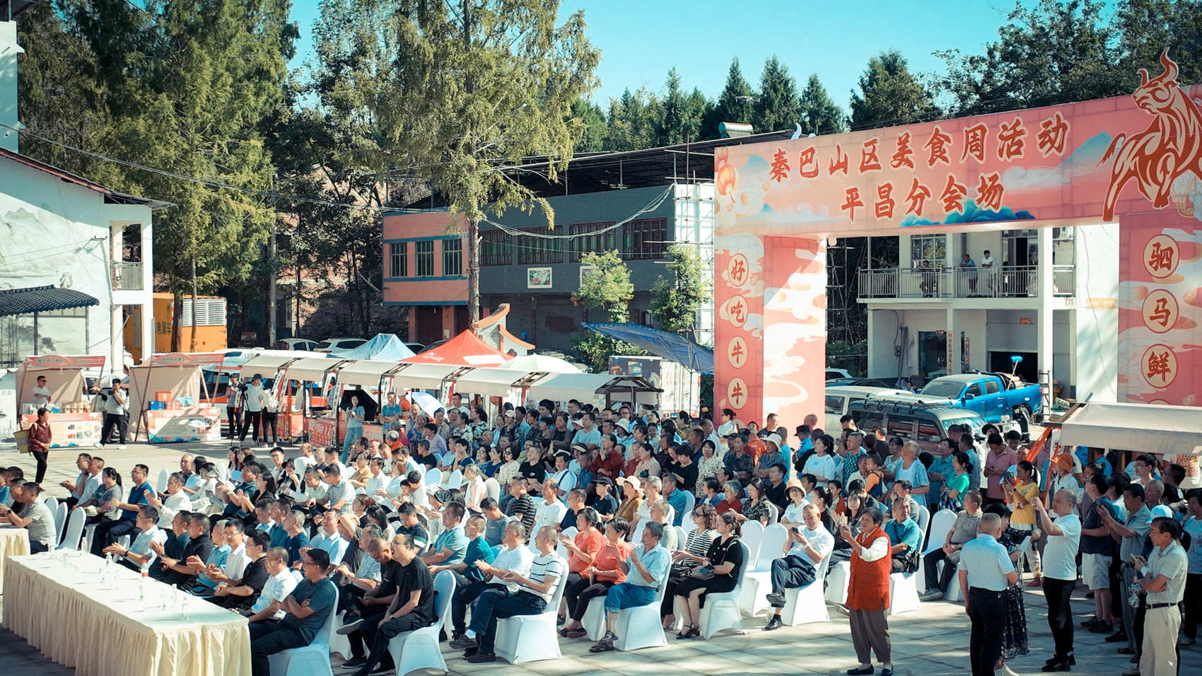 9月14日一早,平昌县驷马镇天生社区肉牛产业主题馆广场上渐渐热闹起来,各式小摊围着广场依次排开,罗列着各色美食,伴随着阵阵音乐声响起,秦巴山区美食周活动平昌分会场也正式拉开序幕。