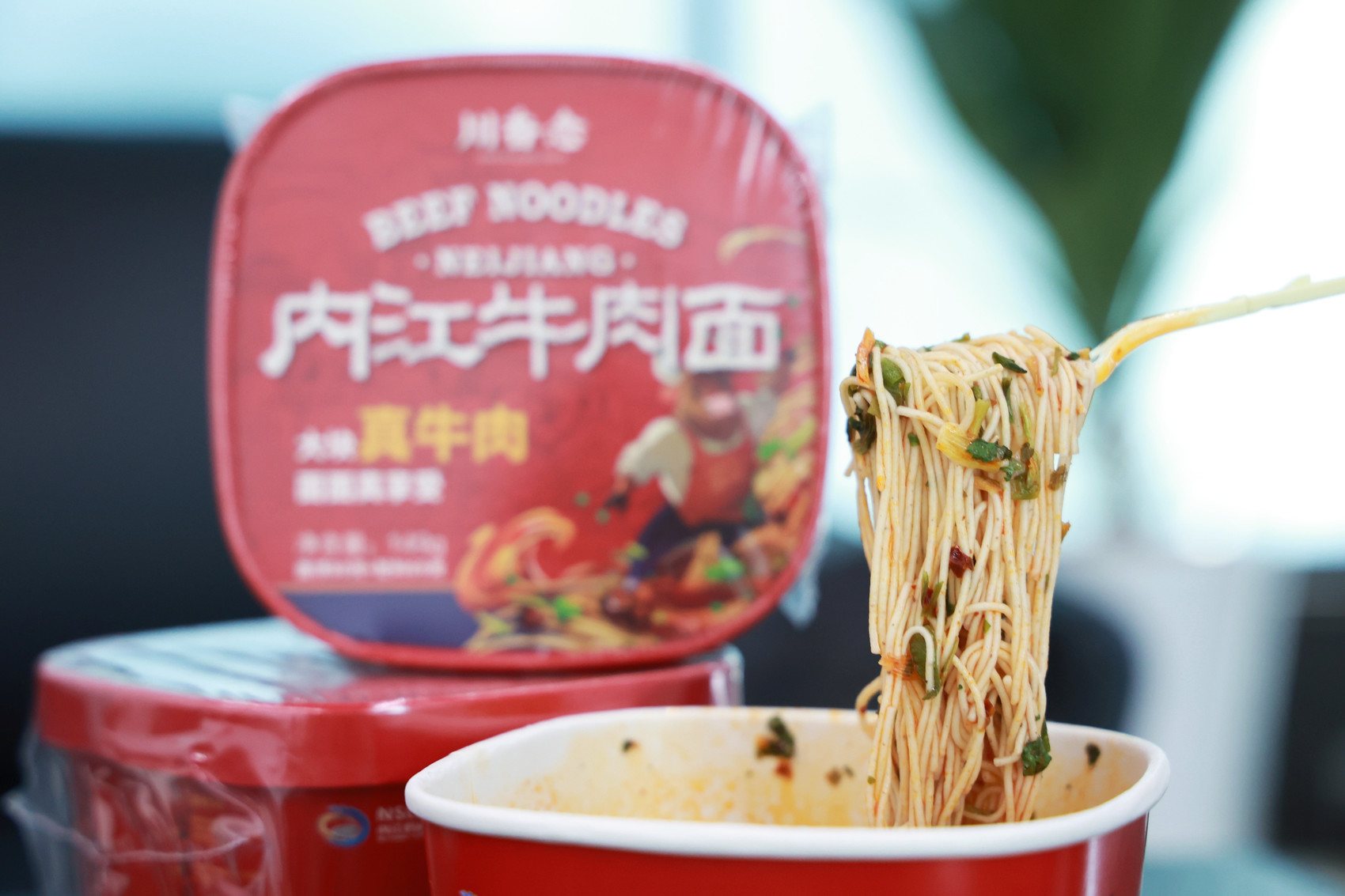 很多人说,内江人的一天是从一碗牛肉面开始。内江牛肉面面条劲道细滑、牛肉绵香化渣、汤底麻辣鲜香,素有“巴蜀小吃之首”的美誉。如何将这一碗面原汁原味地呈现在全国人民的饭桌上,这是内江长久以来思考的问题。