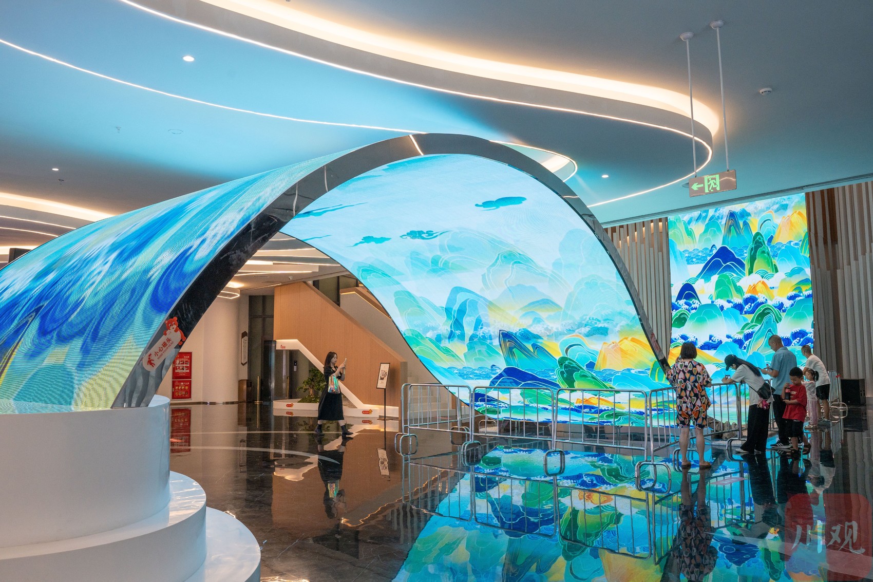 在“三江之眼”,吃喝玩乐一应俱全,将带给你高颜值、科技感、网红化的全新体验。一楼展馆拥有多种高科技互动体验,结合宜宾地域文化而诞生的5D影院数字瀑布屏幕,深度体验长江流域大江文化。在互动长卷、热气球飞行影院等项目中沉浸体验“科技+非遗”的宜宾文化。