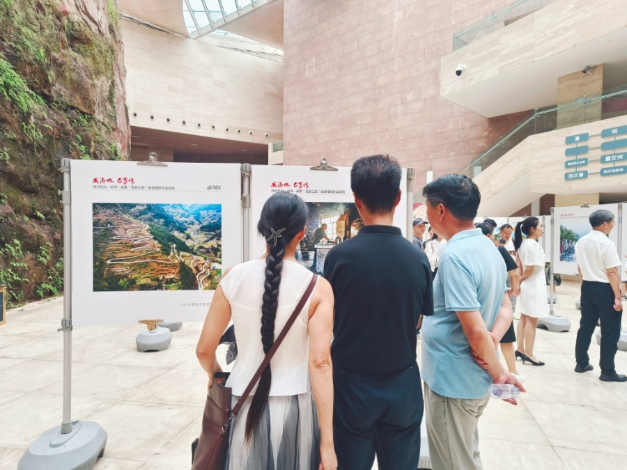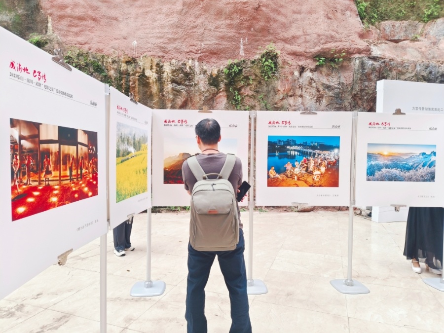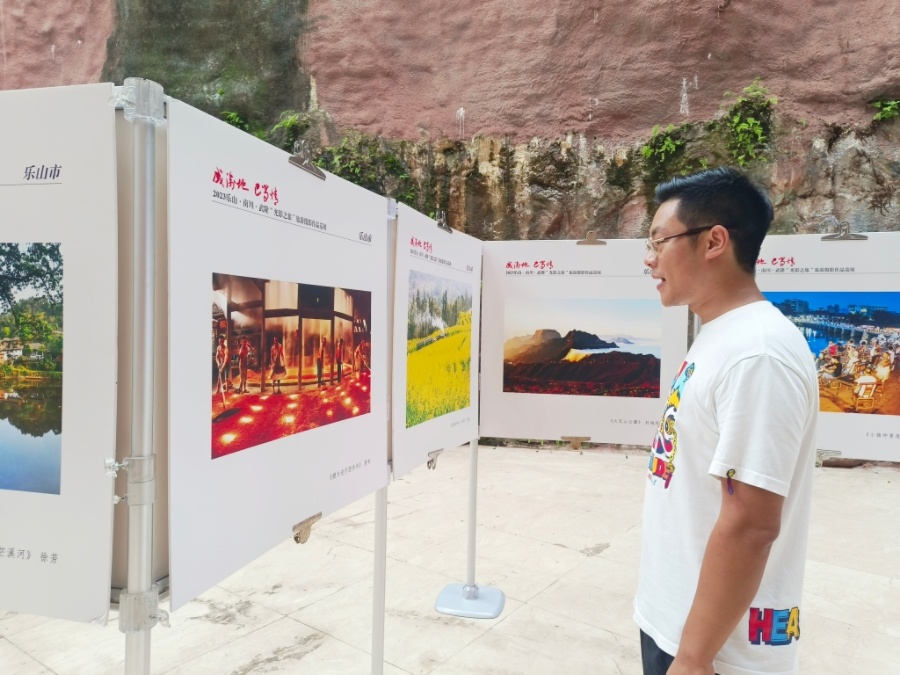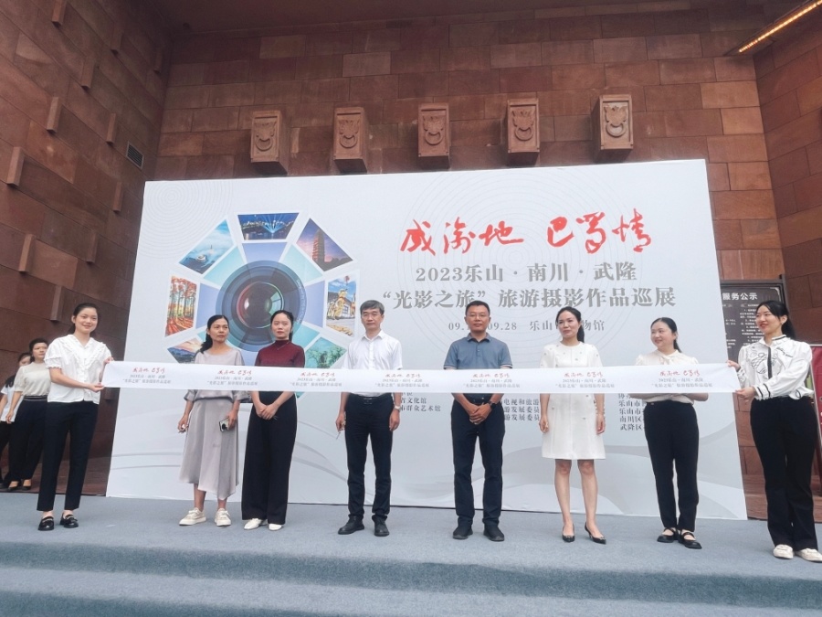 9月15日,成渝地·巴蜀情2023乐山·南川·武隆“光影之旅”旅游摄影作品巡展在乐山市博物馆开展。摄影展集中展出了乐山、重庆南川、重庆武隆三地的摄影家们拍摄的120幅山地自然与人文经典作品,涵盖了自然遗产和旅游名山为主体的自然生态、风光名胜、文化古迹、非物质文化遗产等主题。