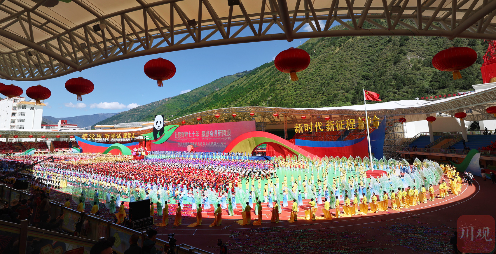 这是一个喜庆的日子。9月16日,清晨的阳光宁静淡雅,阿坝州马尔康市梭磨河畔的阿坝州体育场里,却是一派热闹的场景。