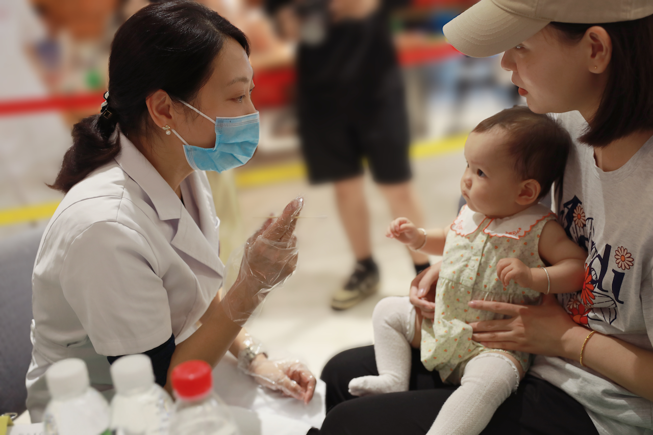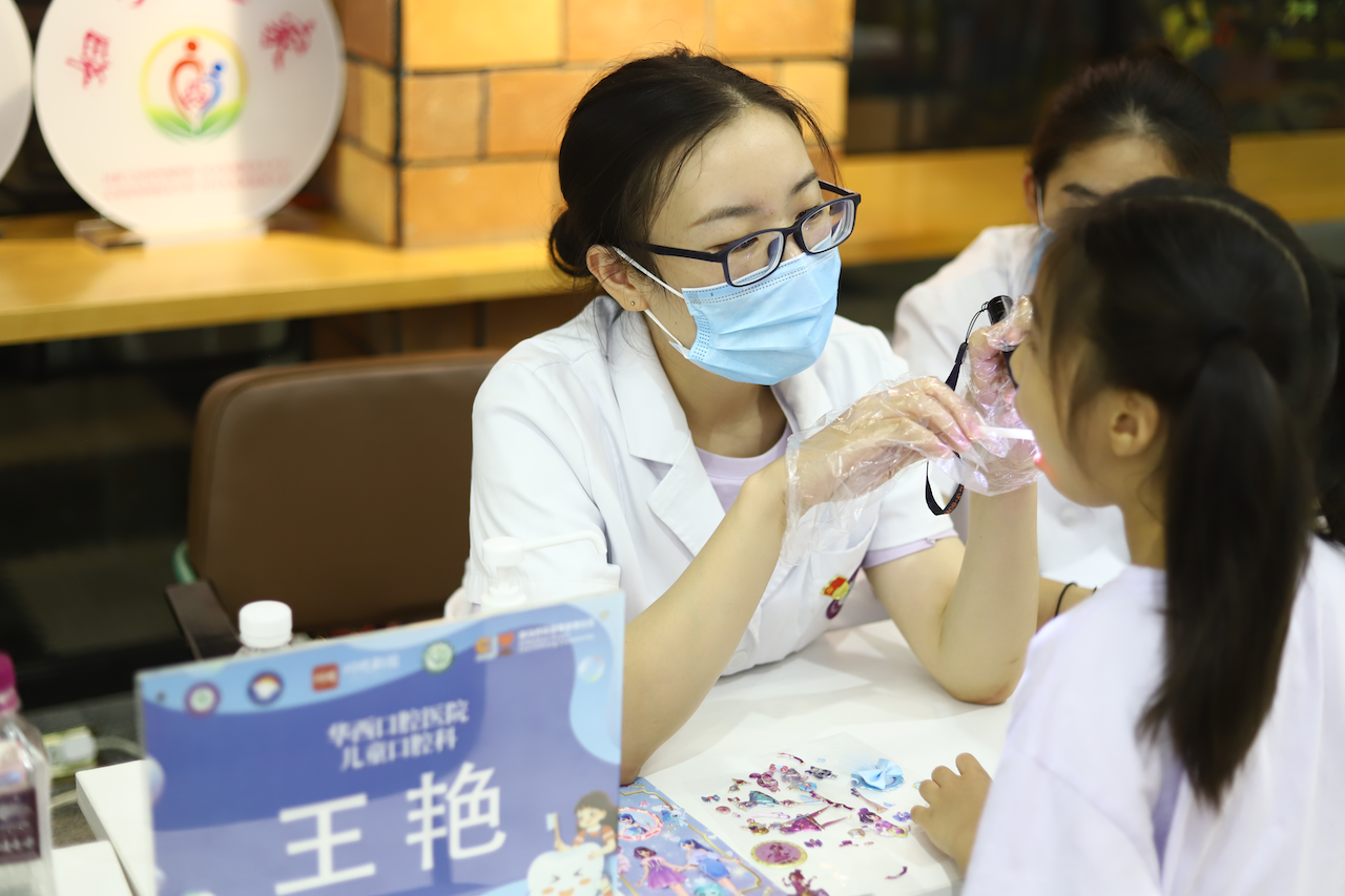 四川大学华西口腔医院儿童口腔科副主任张琼为小朋友进行口腔健康评估