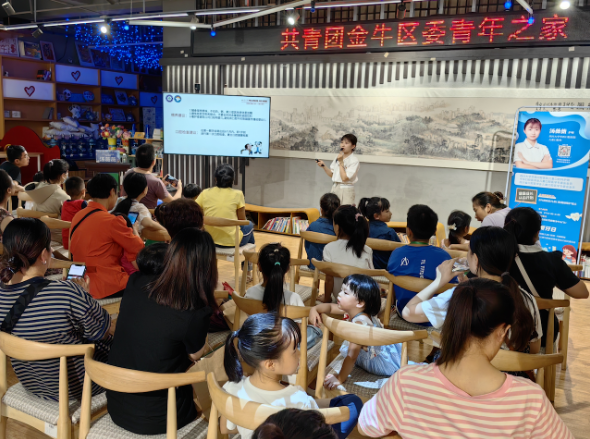 四川大学华西口腔医院儿童口腔科护师汤薇薇为家长和孩子进行名为“各年龄阶段儿童口腔健康维护要点”的主题讲座