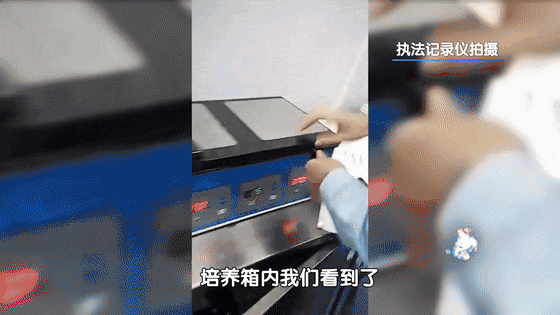 实验室内发现有两台处于通电状态的台式培养箱,里面有4-5个标记不同姓名的培养皿。