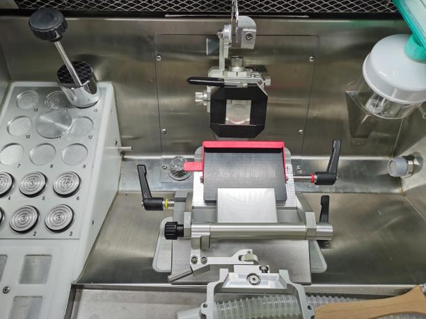 术中冷冻切片病理诊断是临床医师在实施手术过程中,就与手术方案有关的疾病诊断问题请求病理医师进行快速的急会诊,它的结果决定着后续的手术方案和范围;需要临床医师与病理医师间密切合作。当手术室把切除组织送至病理科后,我们的收发人员以最快的速度(一般1~2分钟)完成核对、登记、编号等工作,然后快速将其取材并进行冷冻制片染色,紧接着病理医师在显微镜下进行快速诊断,向手术医师提供参考性病理诊断意见;上述整个过程需要在30分钟之内完成。为了能够快速制片,该检查大部分必须在-20℃的冰冻环境下操作,是病理科名副其实的“冰上”项目,其难度通常要高于常规病理技术。