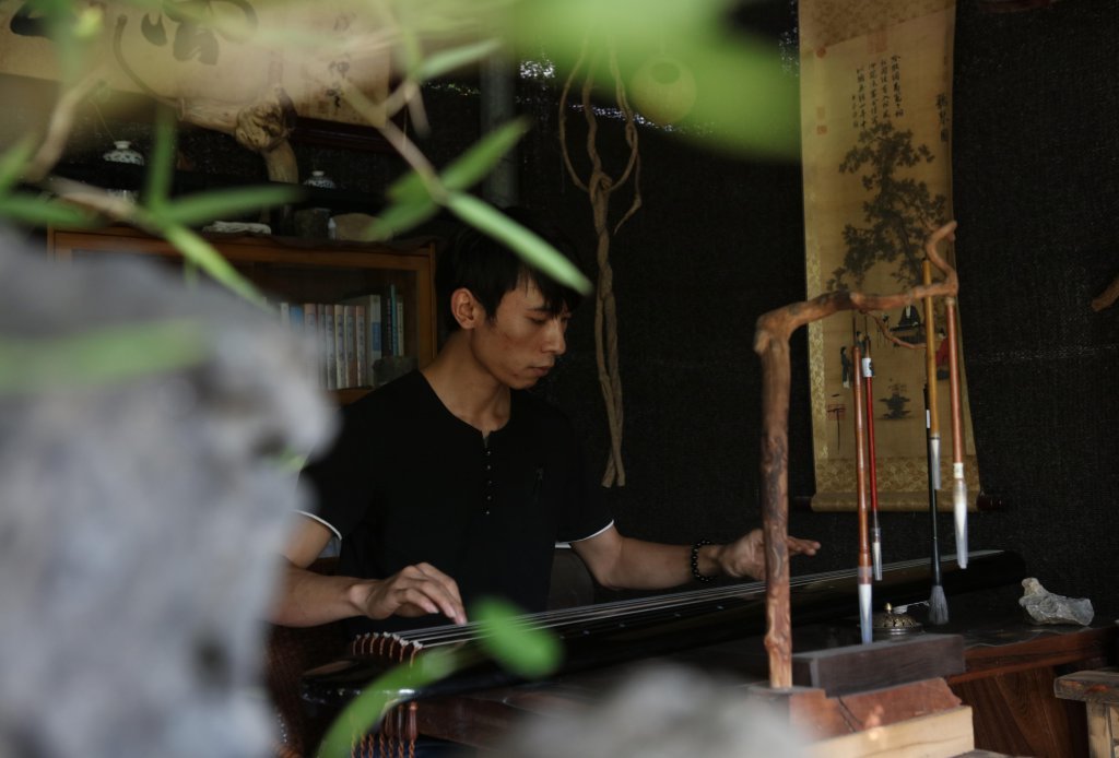 在华蓥市双河街道招勋村一处农家小院里,一几一榻,指尖在古琴上慢抚轻泛,和着悠远空灵的琴音,几上的那炷檀香袅袅飘去,一时间,不知是陶醉在这古老琴韵中,还是折服在清和淡雅的意境里……