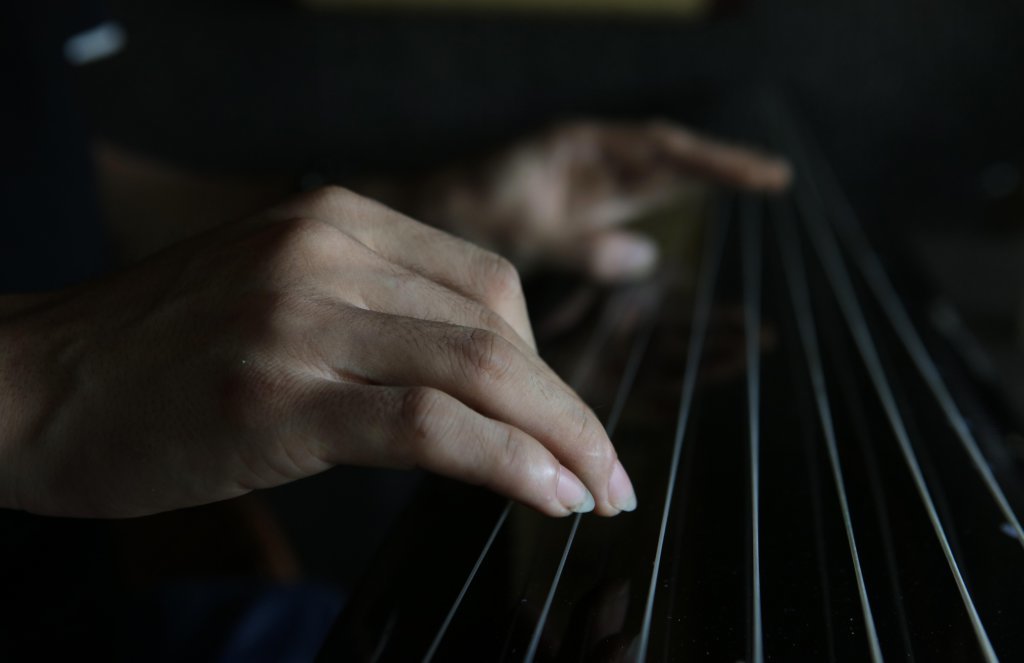 2023年9月5日,邓天用制作好的古琴初次试弹。
