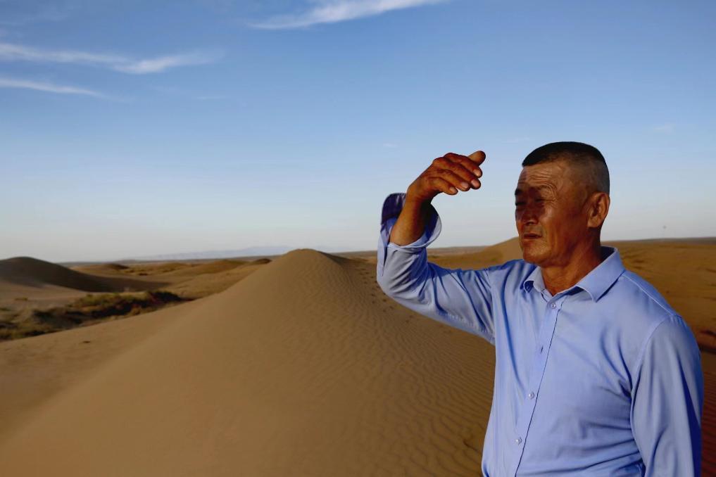 乌日根达来还是个精壮小伙时,在妻子支持下,卖掉家里的山羊换回2万元,正式开始植树治沙。