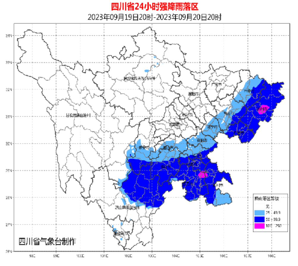 四川省气象台9月19日15时39分继续发布暴雨蓝色预警:9月19日20时到20日20时,达州、广安、自贡、宜宾、泸州5市和巴中、内江、南充3市东部及乐山、雅安2市南部、凉山州东北部有暴雨(雨量60~90毫米),局部地方有大暴雨(雨量120~160毫米),最大小时雨量40~60毫米。另外,甘孜州东南部局部地方有大雨(25~40毫米)。相关区域请注意强降雨引发的小流域山洪、地质灾害、中小河流洪水等风险的发生,注意预防。