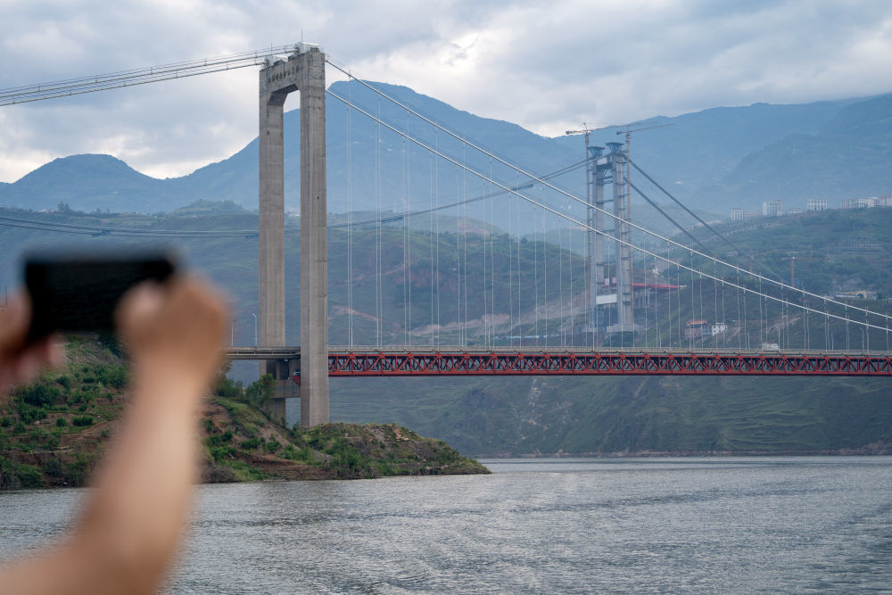 这是9月18日拍摄的白鹤滩水电站库区的葫芦口大桥。