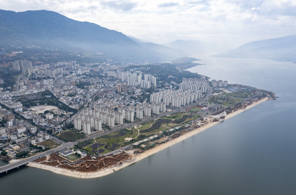 这是9月18日拍摄的位于白鹤滩水电站库区的巧家县城(无人机照片)。