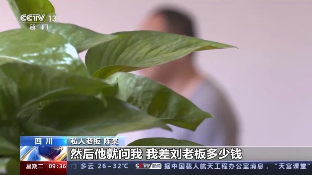 私人老板 陈某:毕竟还是我们做的生意很多也是他管辖的范围之内。当时刘老板没给我打欠条,然后也没想过要得回来,或者要不回来这种情况,主要是尽快把这个事情处理掉,不能让他找我麻烦。