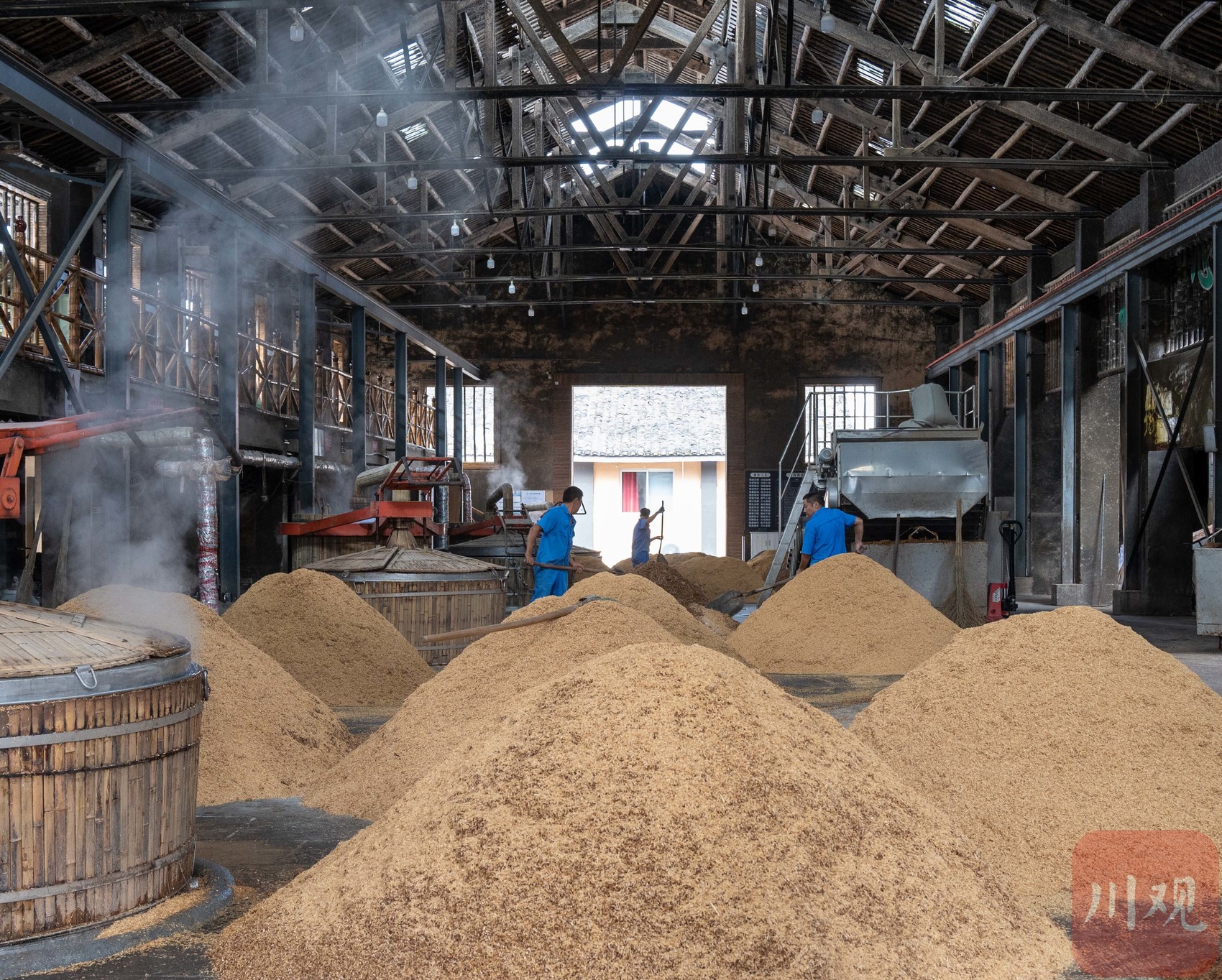 走进酿酒车间,酒和竹飘散的香气扑面而来。竹海酒是以高粱、大米、糯米、小麦、玉米为原料,依托蜀南竹海得天独厚、不可复制的微生物生态环境,经蒸煮、蒸馏、长期陈酿、精心酿造而成。游客不仅可以参观古法酿酒30个工序,参与体验酿酒生产劳动,还能现场品评竹海酒庄纯粮原浆美酒。