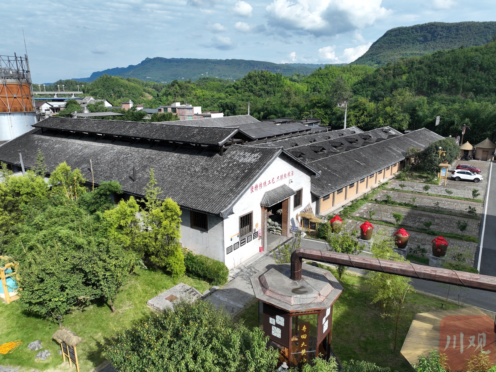 9月19日,记者走进宜宾市长宁县竹海镇竹海酒庄,公园式的厂区让人眼前一亮。随处可见的装饰融入了竹元素与酒元素,古色古香,一处一景。