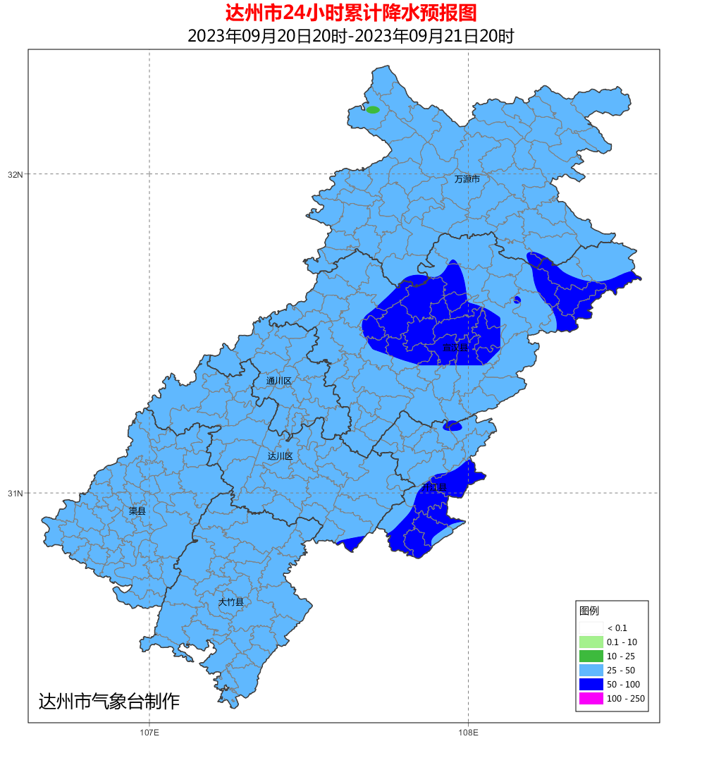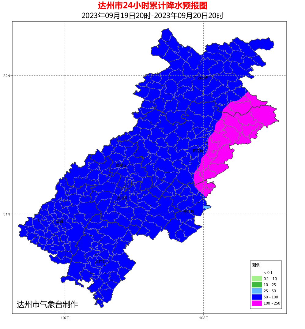 据达州市气象台19日发布的最新预报,预计19日晚上到20日白天,达州市大部地方大雨到暴雨(40~80 毫米),局地大暴雨(100~120 毫米),最大小时雨强20~40毫米。