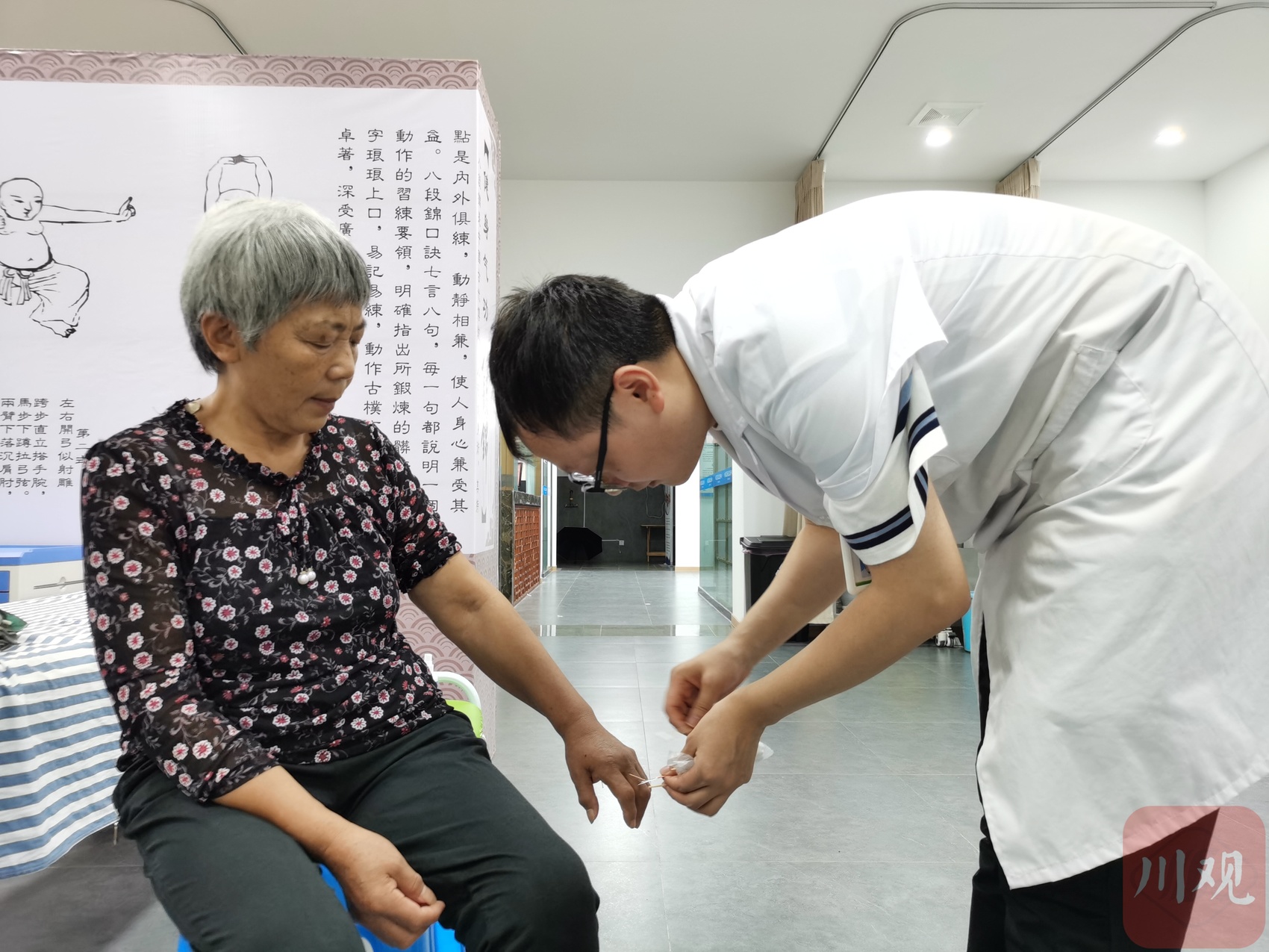 9月18日,71岁的张水清来到资阳雁江区向阳社区,距离她家不到10分钟路程。一天以前,她的肩膀被扭伤,于是来社区就诊。雁江区人民医院中医科主任罗明远为其进行了治疗。