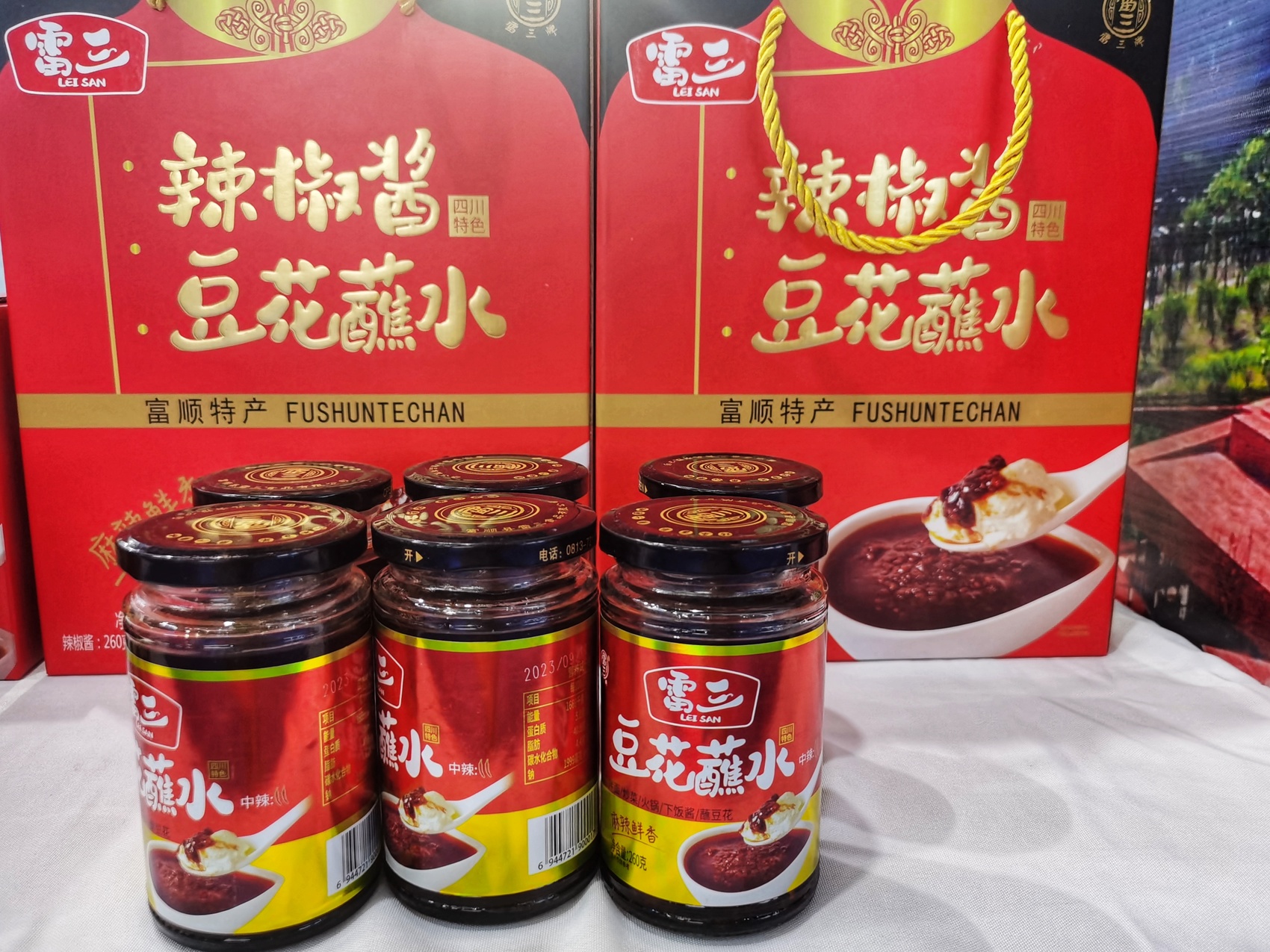 19日下午2时许,富顺县雷三食品有限公司的负责人雷正麻利地装上几瓶豆花蘸水,提着口袋从展位离开,往中外地理标志产品博览会产销对接会的会场赶去。雷正和吴松抱有同样的展望,他希望自己能在这次展会上找到合适的经销商,让在当地很受欢迎的豆花蘸水走出自贡、走出西南。