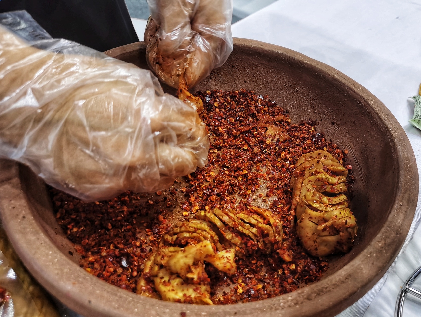 一些未来可能的商业合作在中外地理标志产品博览会上萌芽。“我们西北人也爱吃辣,和川渝的辣在辣度、味道等方面有口感上的差别。”甘肃华厦邦农农业科技有限公司总经理王强介绍,公司除了生产油泼辣子外,也生产辣椒面、辣椒调料、辣椒酱等产品。他拿起展位上的一瓶双椒酱,“这个系列就是我们和四川的一家工厂合作生产的,有些生产工艺四川这边能更好实现。”王强也表示,希望能通过这次博览会,找到更多合适的合作商。