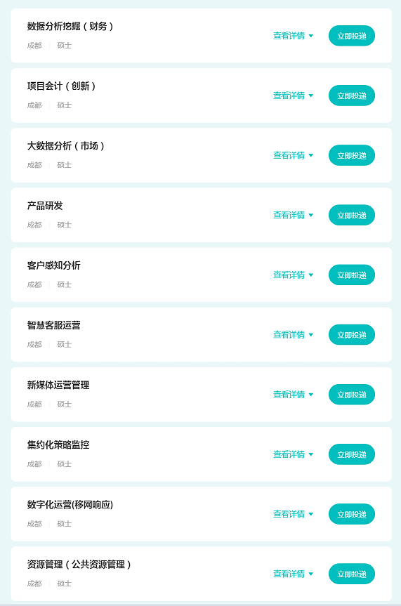 具体岗位要求、投递要求请登录四川联通2024校园招聘页面(https://www.zhipin.com/kj/sclt2024?source=11)查看。
