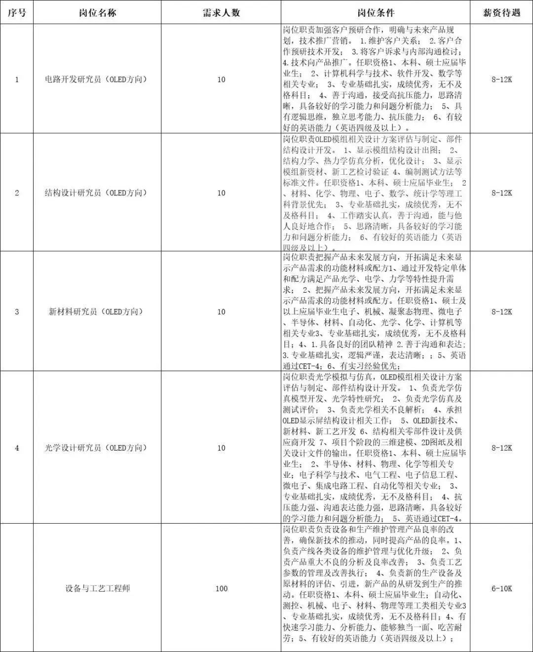 京东方校园招聘提供了140个招聘岗位,岗位信息如下图: