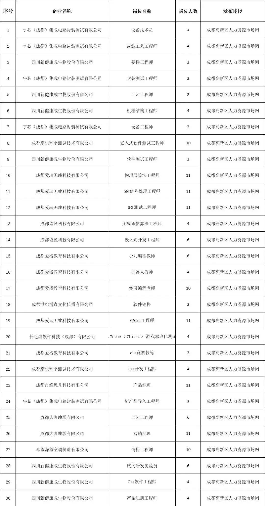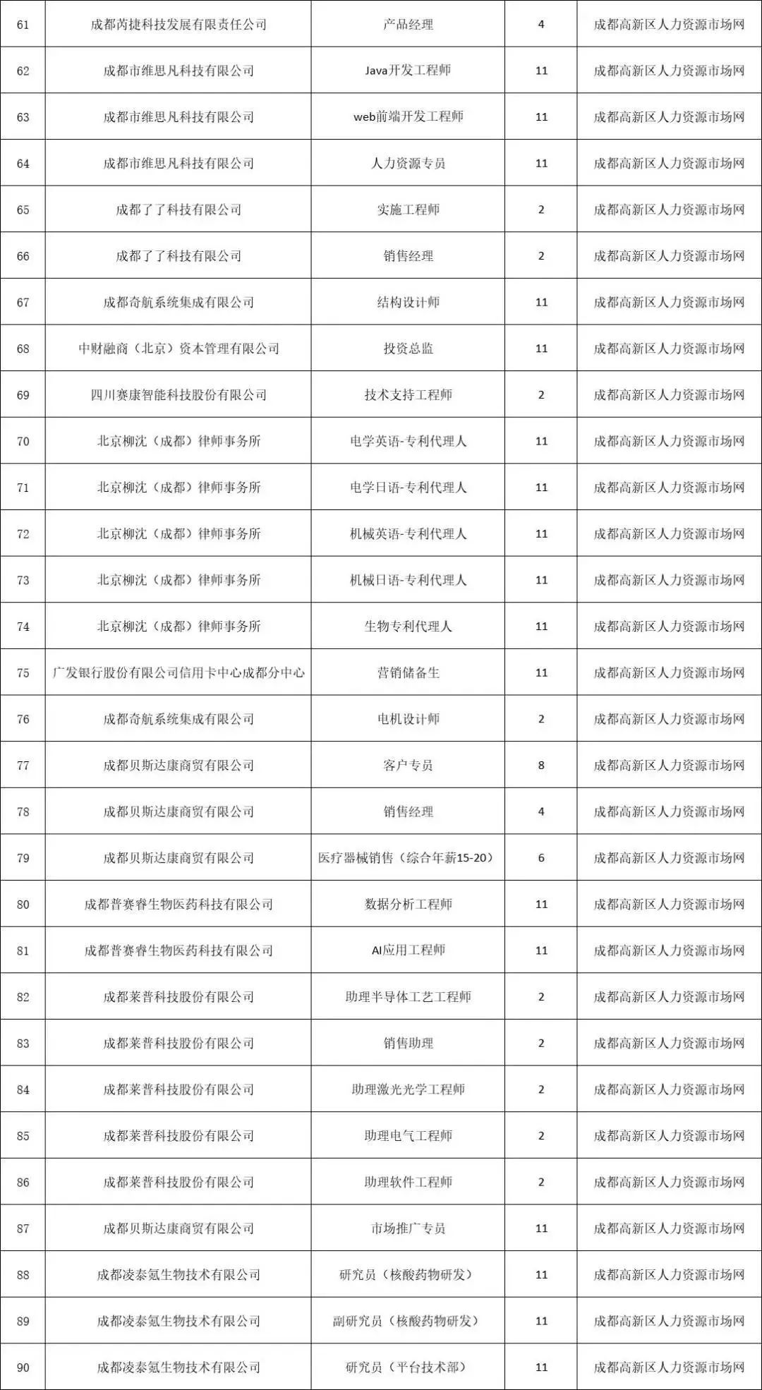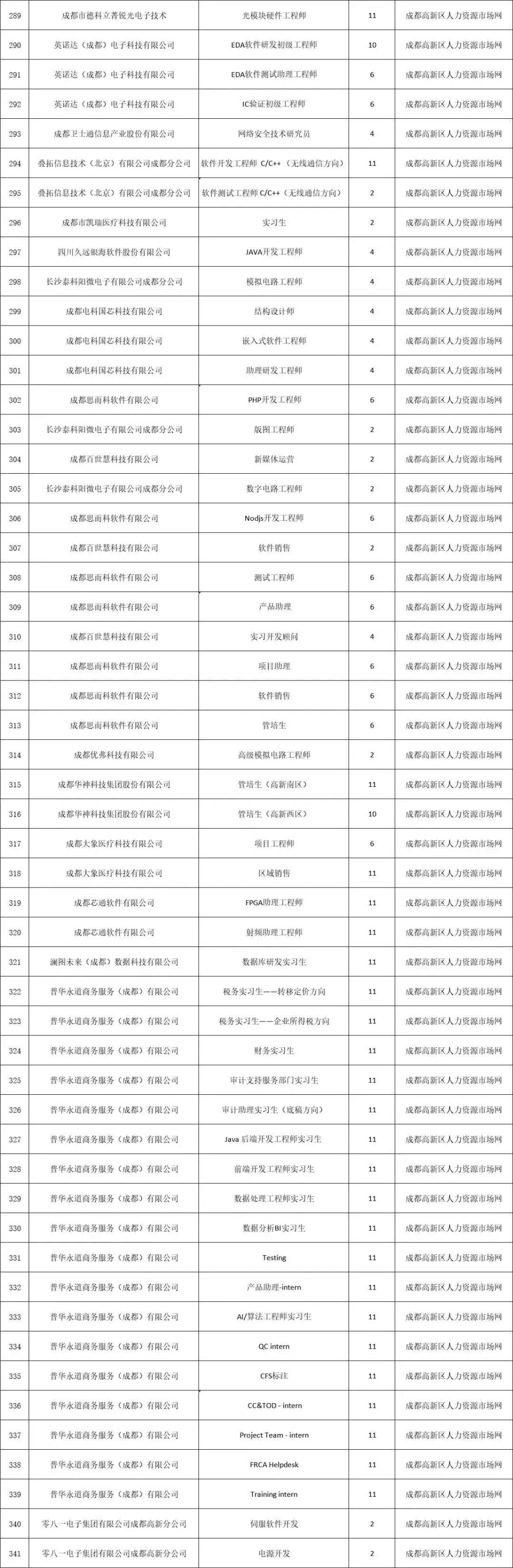 成都高新区还收集了2800+个岗位信息,在此一并公布↓↓↓