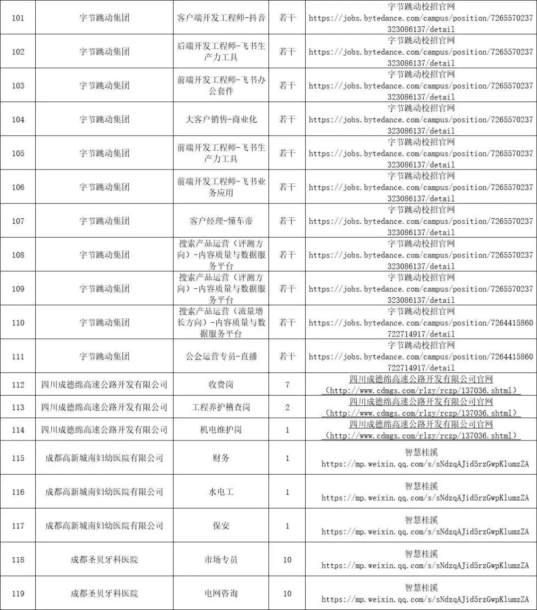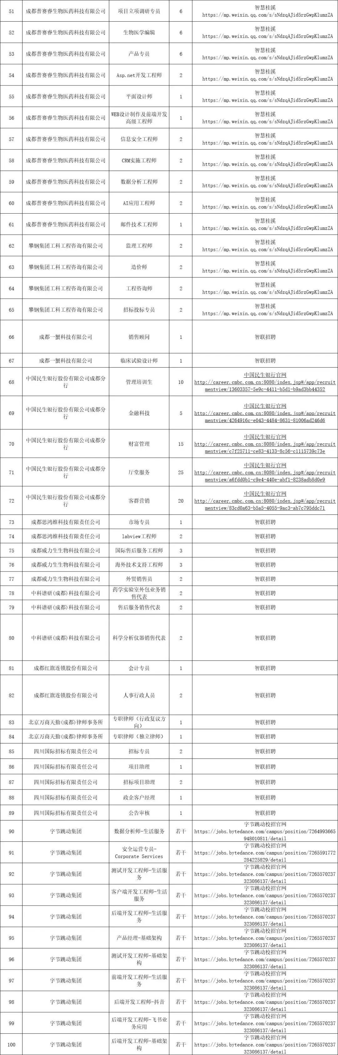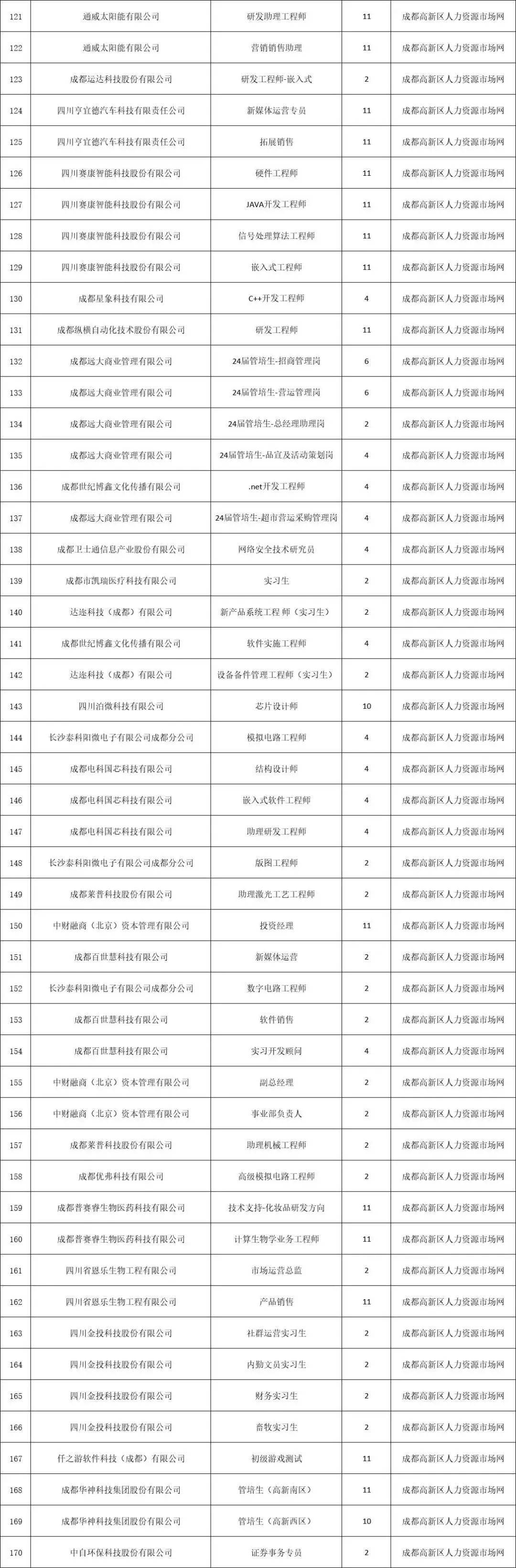 成都高新区还收集了2800+个岗位信息,在此一并公布↓↓↓
