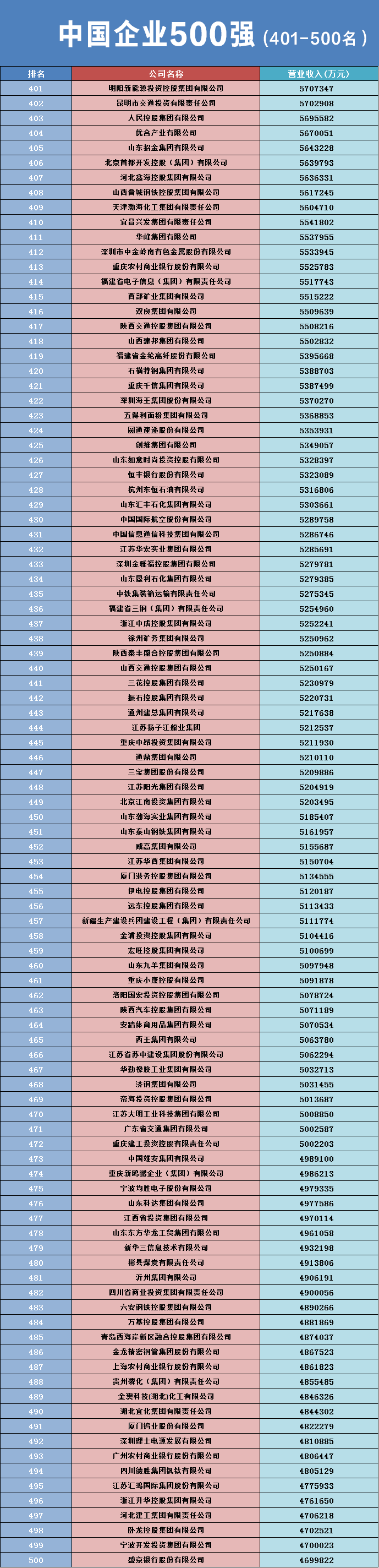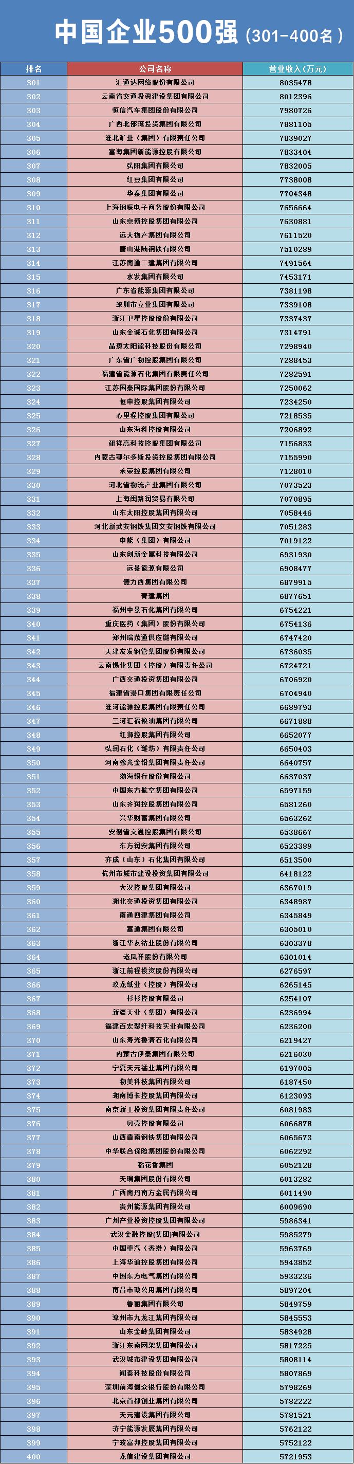 据悉,2023中国企业500强规模继续保持增长态势,营业收入总额108.36万亿元,比上年500强增加5.74%;资产总额为399.77万亿元,比上年500强增加了27.24万亿元,增长了7.31%;入围门槛连续21年提高,2023中国企业500强入围门槛为469.98亿元,比上年增加23.73亿元。