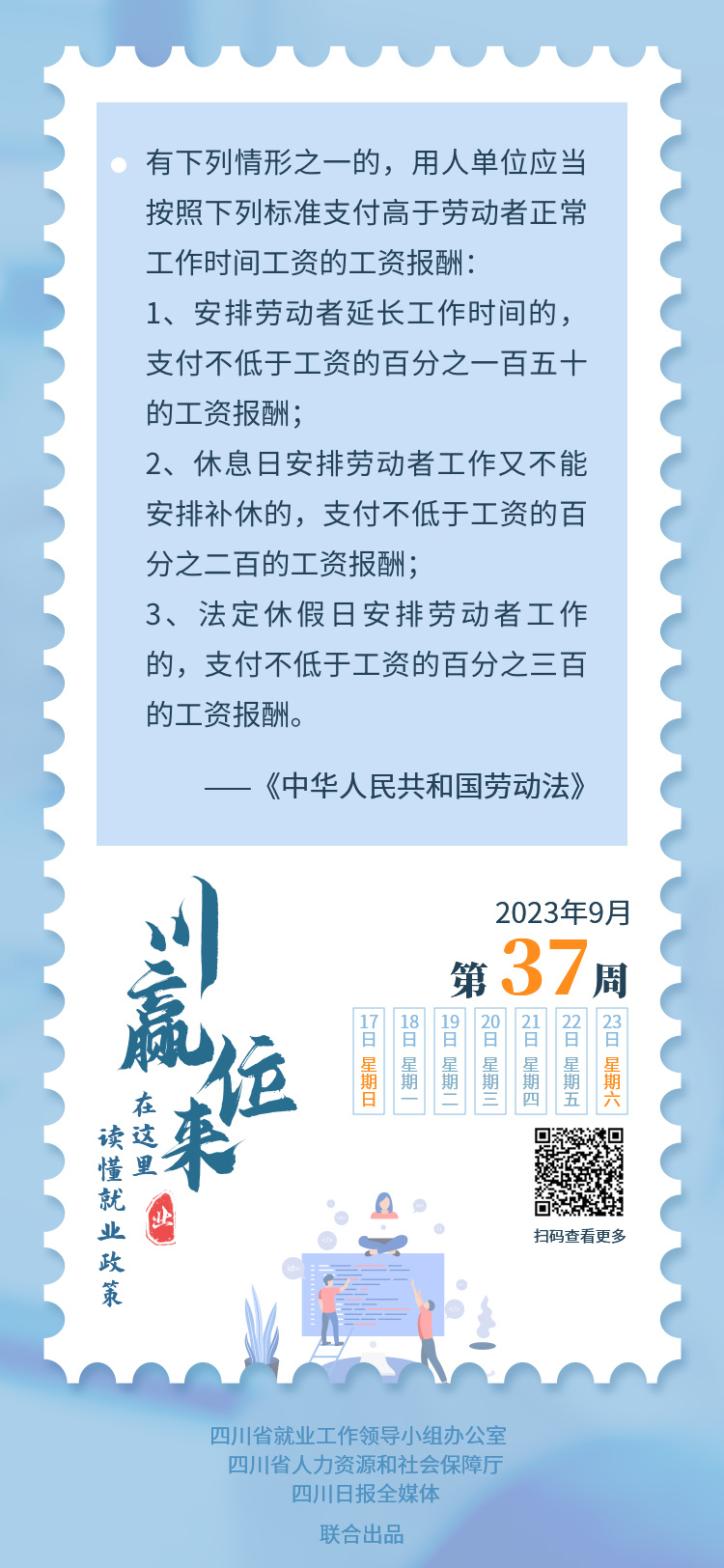 即将迎来快乐的中秋、国庆“双节”,祝各位亲爱的朋友节日快乐。每逢节假日,人们总会关注加班工资这个问题。加班工资该怎么算,大家清楚吗?什么时候加班工资算1.5倍?什么时候算2倍?什么时候又应该按3倍计算?所有的加班,都必须支付加班工资吗?什么情形下不用支付呢……本期“川赢位来·就业政策周历”一起来聊一聊有关加班工资的事情。