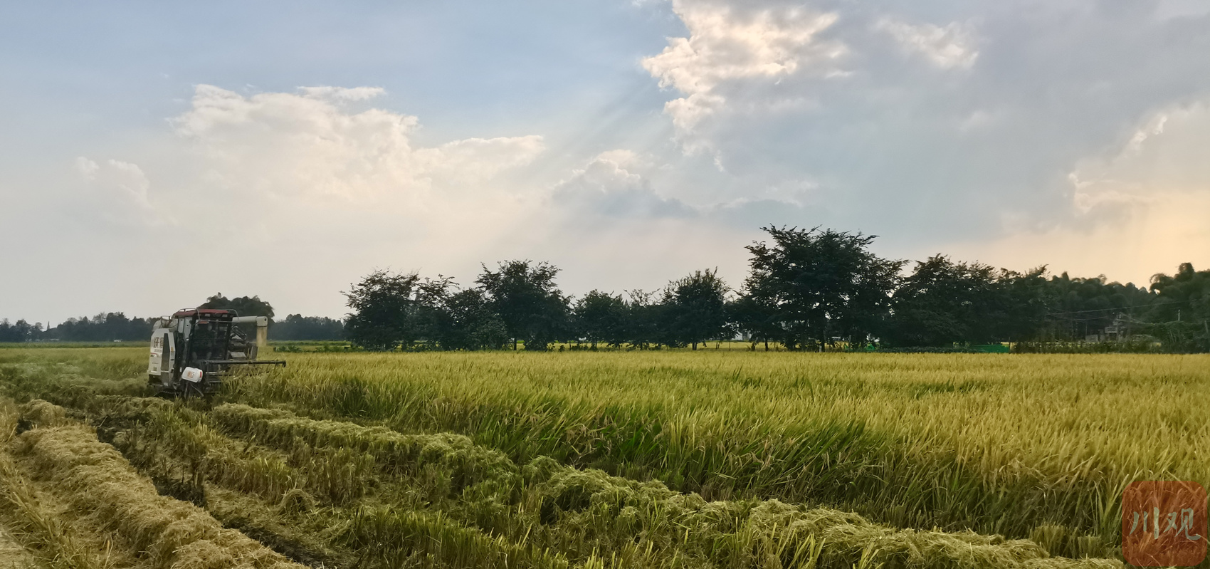 正在秋收的成都市大邑县安仁镇元兴社区旭成农作物种植专业合作社水稻田